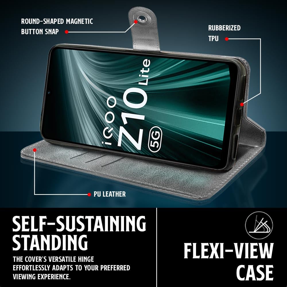 Buy premium shock proof flip cover back case for vivo t4 lite 5g. Leather finish with magnetic flip closure, wallet pockets and stand support. Durable protection against drops and scratches with a perfect fit for vivo t4 lite 5g.