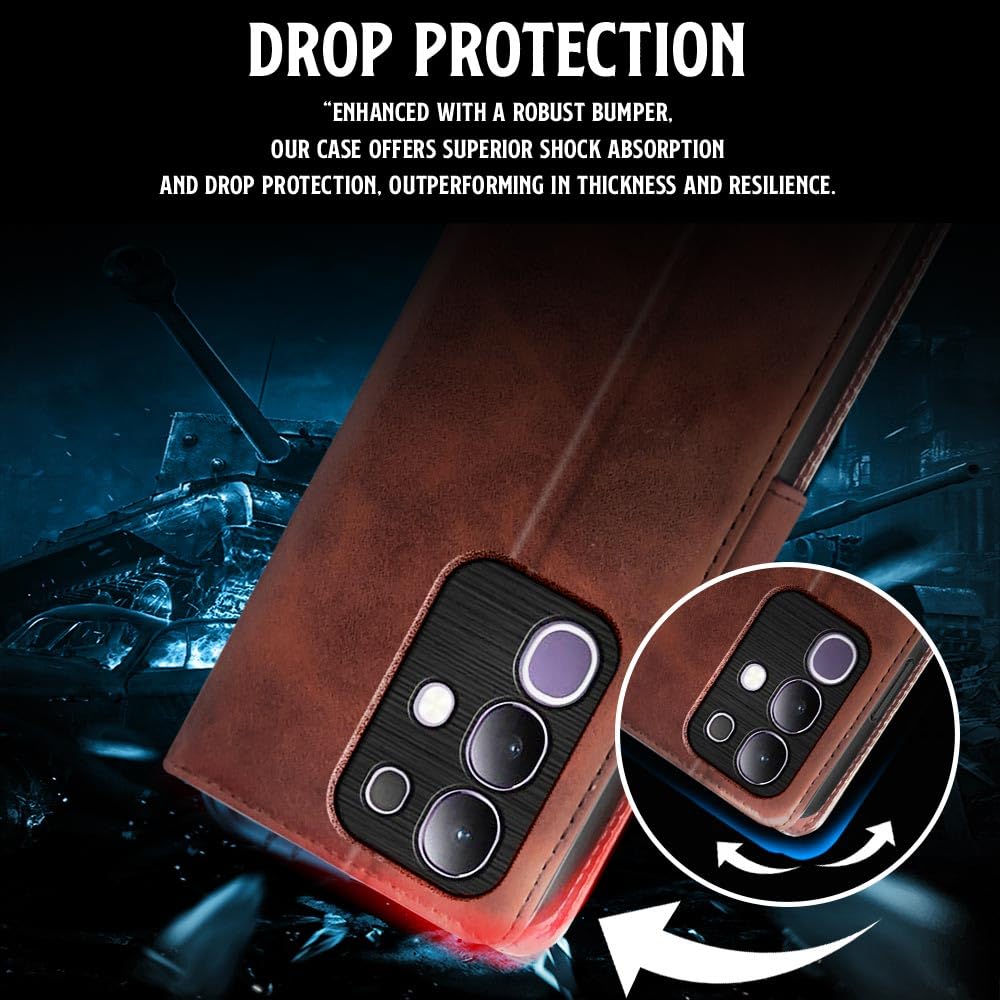 Shock Proof Flip Cover Back Case for Vivo T4X 5G | Magnetic Wallet Leather Case with Stand