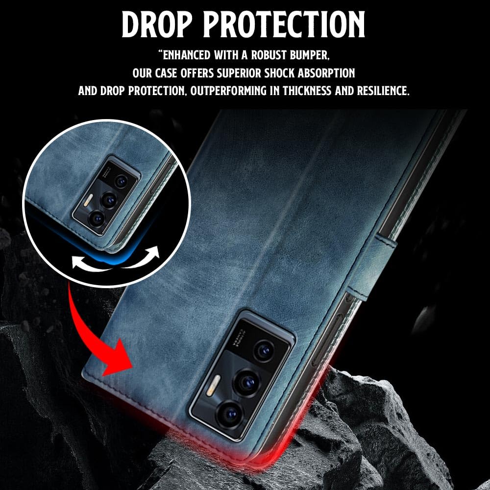 Shock Proof Flip Cover Back Case for Vivo V23E 5G | Magnetic Wallet Leather Case with Stand