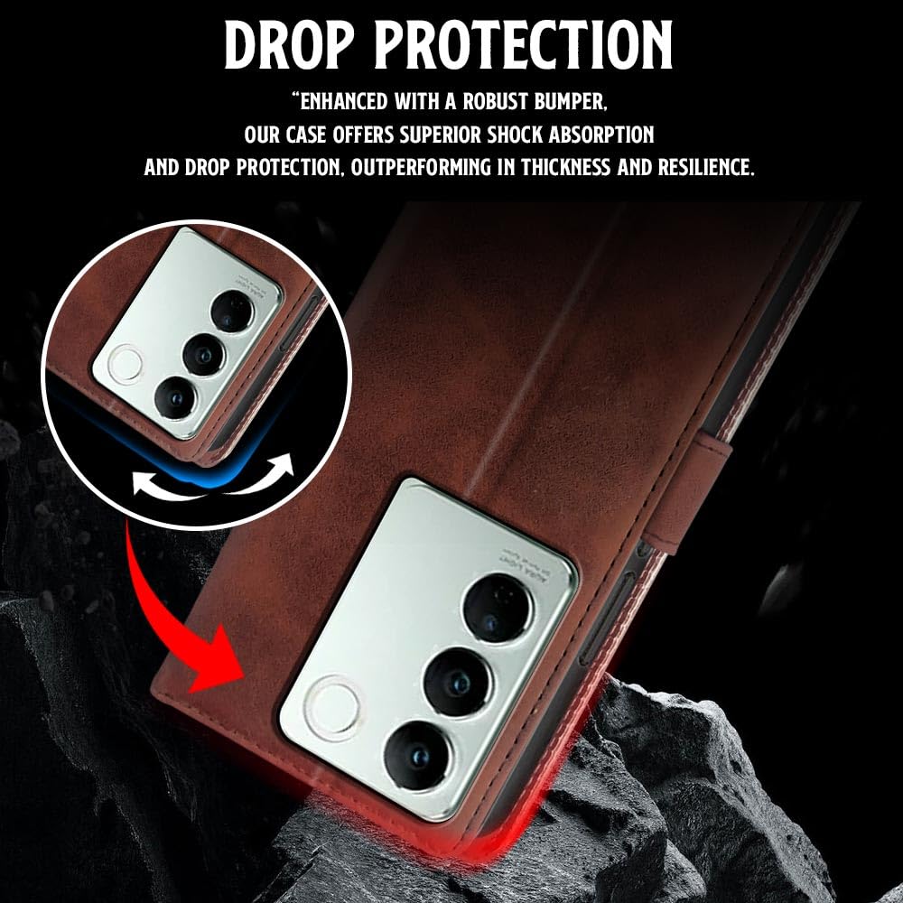 Shock Proof Flip Cover Back Case for Vivo V27 | Magnetic Wallet Leather Case with Stand