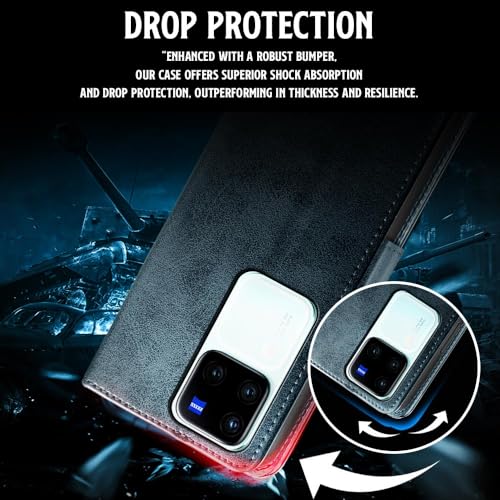 Shock Proof Flip Cover Back Case for Vivo V30 Pro | Magnetic Wallet Leather Case with Stand