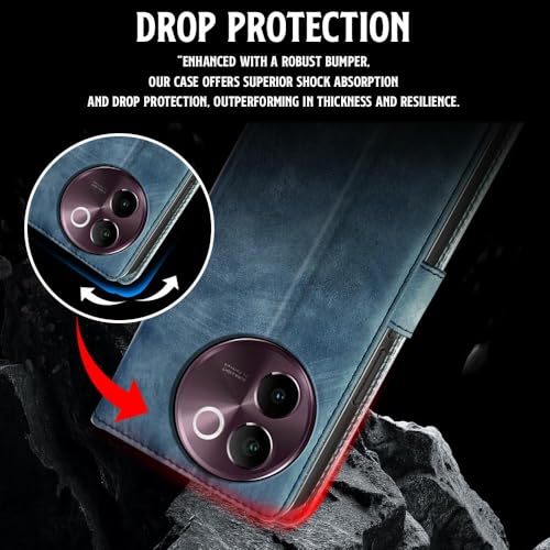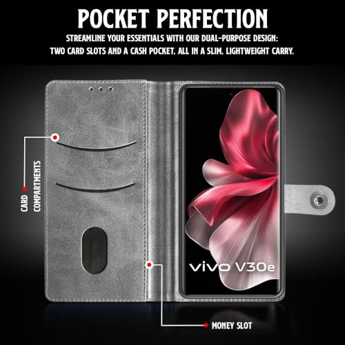 Shock Proof Flip Cover Back Case for Vivo V30E 5G | Magnetic Wallet Leather Case with Stand