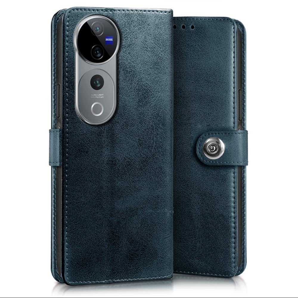 Shock Proof Flip Cover Back Case for Vivo V40 | Magnetic Wallet Leather Case with Stand