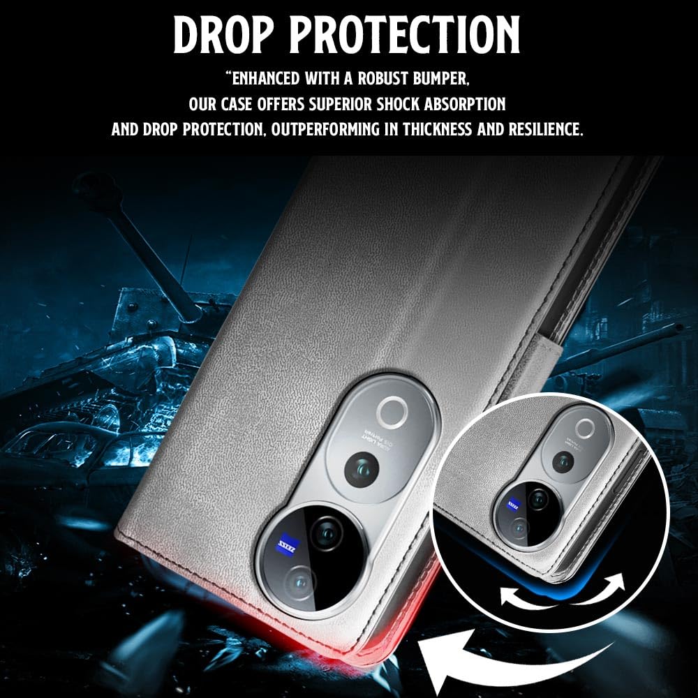 Shock Proof Flip Cover Back Case for Vivo V40 | Magnetic Wallet Leather Case with Stand