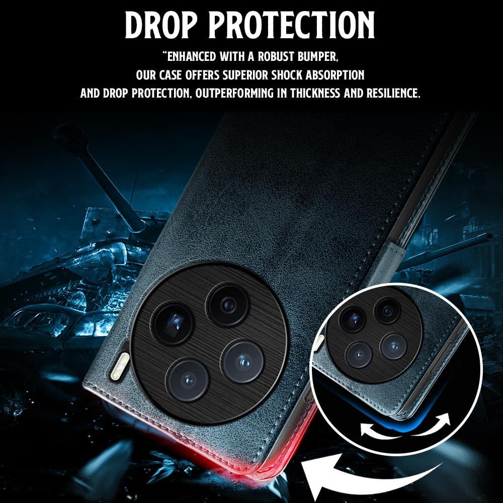 Shock Proof Flip Cover Back Case for Vivo X200 5G | Magnetic Wallet Leather Case with Stand