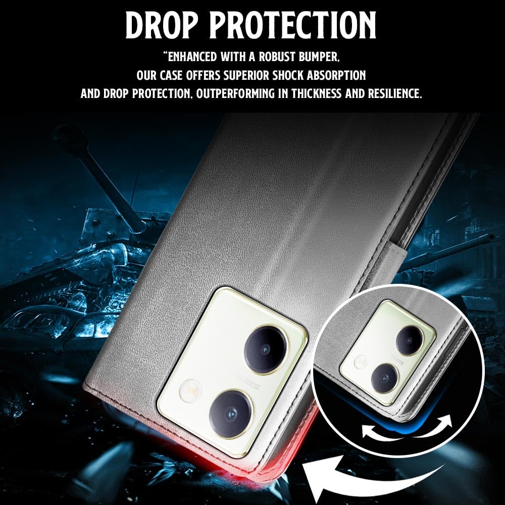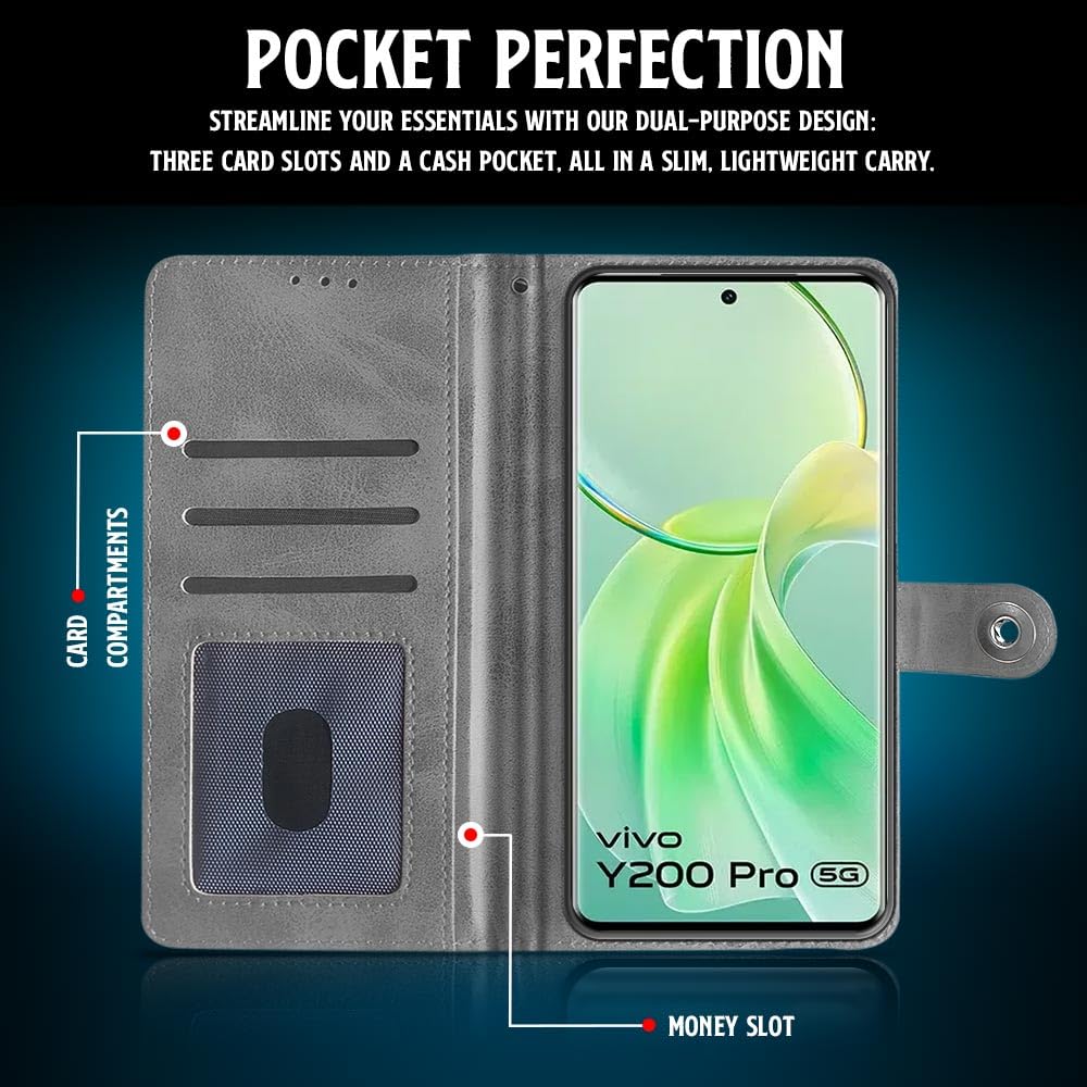 Shock Proof Flip Cover Back Case for Vivo Y200 Pro 5G | Magnetic Wallet Leather Case with Stand