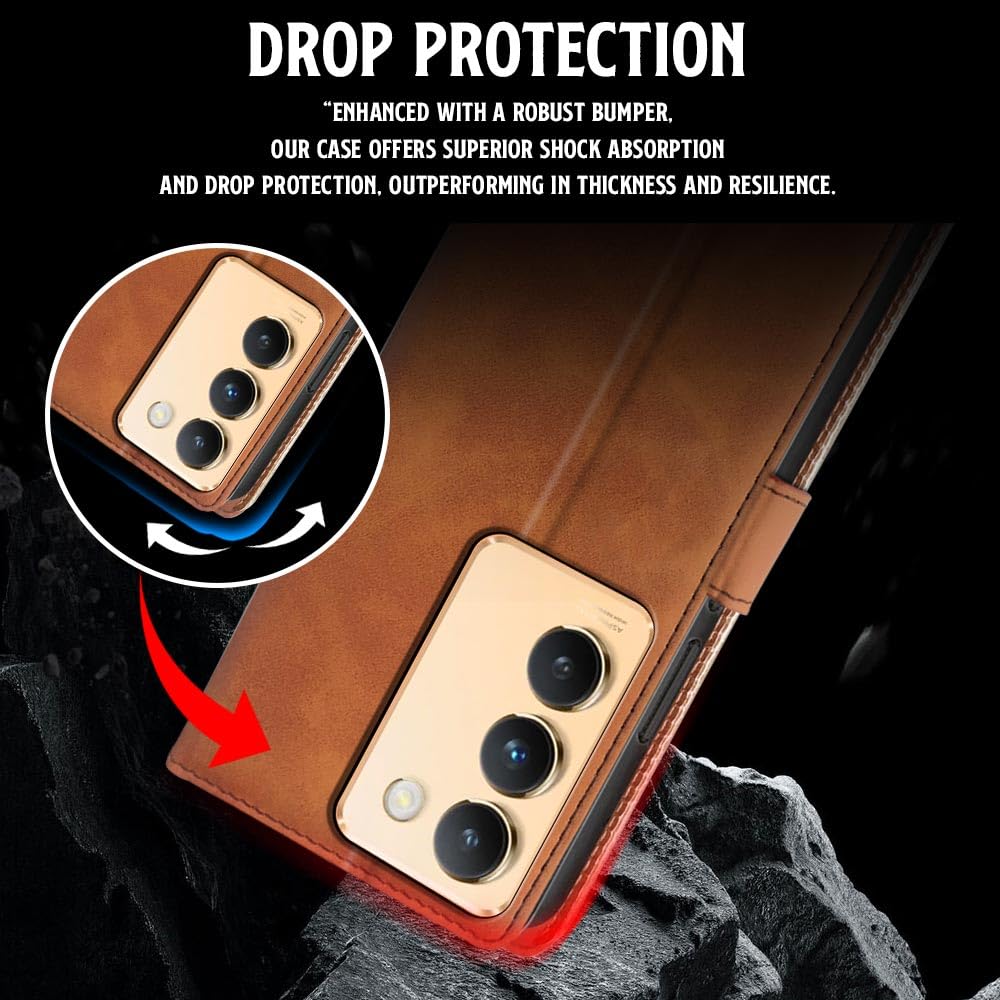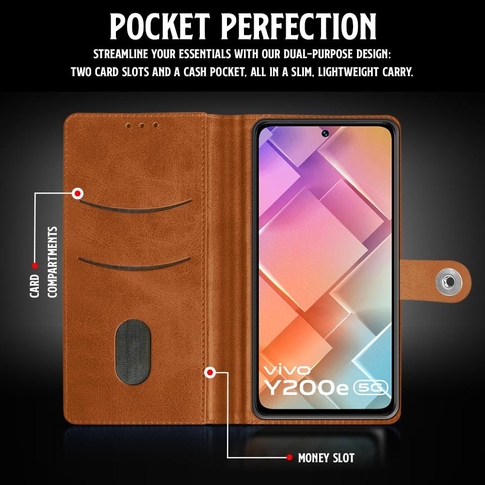 Shock Proof Flip Cover Back Case for Vivo Y200E 5G | Magnetic Wallet Leather Case with Stand