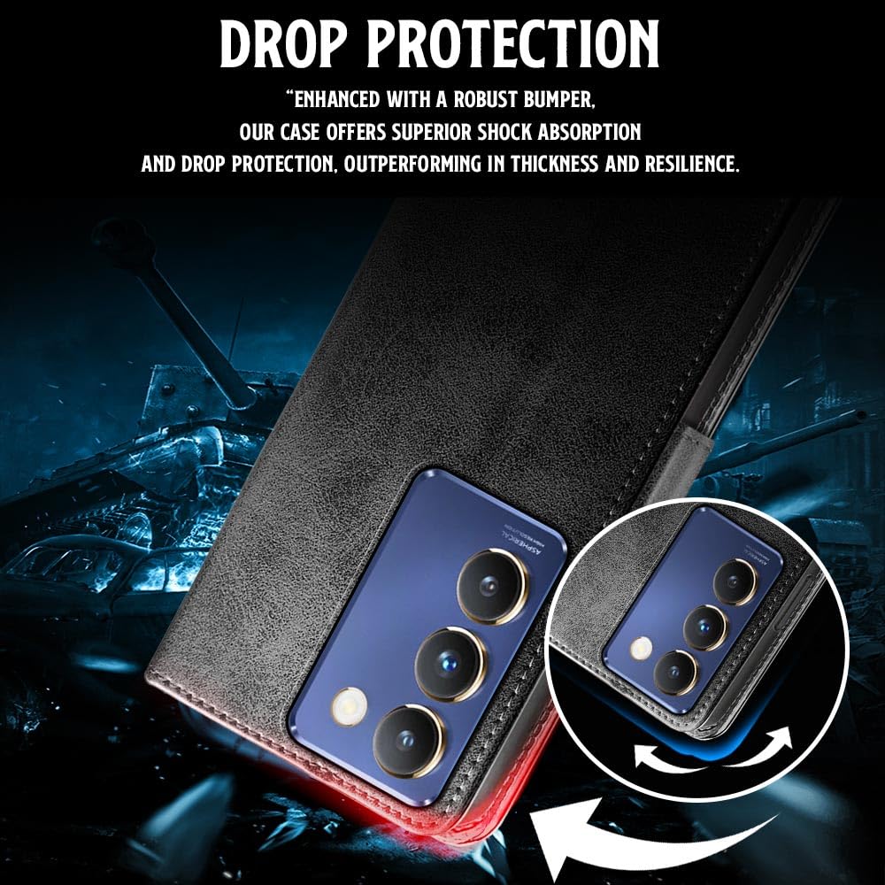 Shock Proof Flip Cover Back Case for Vivo Y200E 5G | Magnetic Wallet Leather Case with Stand