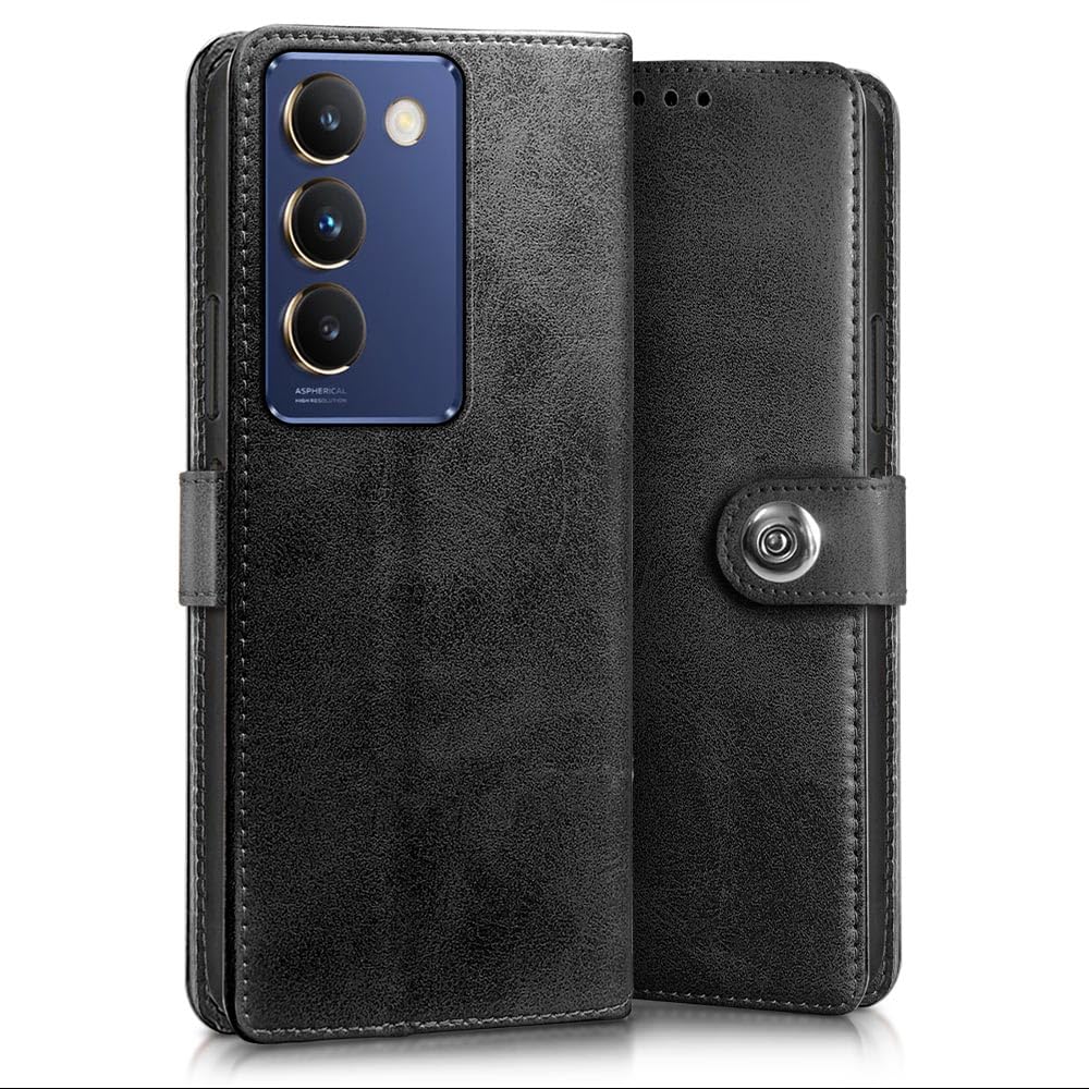 Buy premium shock proof flip cover back case for vivo y200e 5g. Leather finish with magnetic flip closure, wallet pockets and stand support. Durable protection against drops and scratches with a perfect fit for vivo y200e 5g.