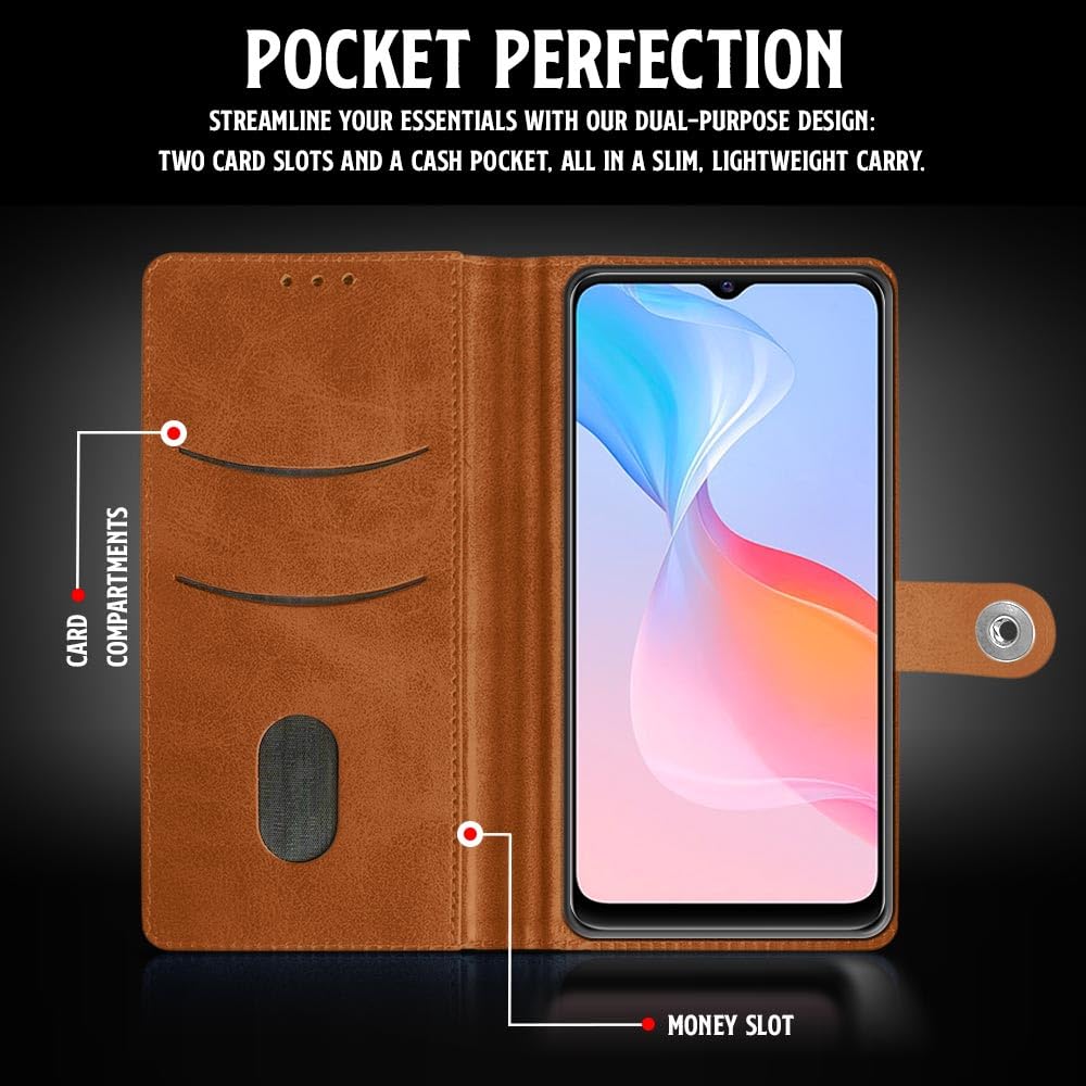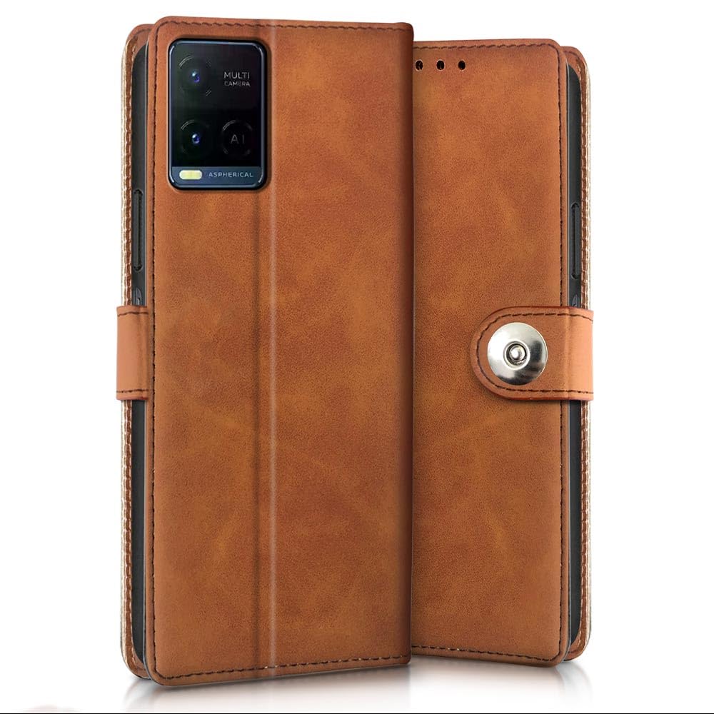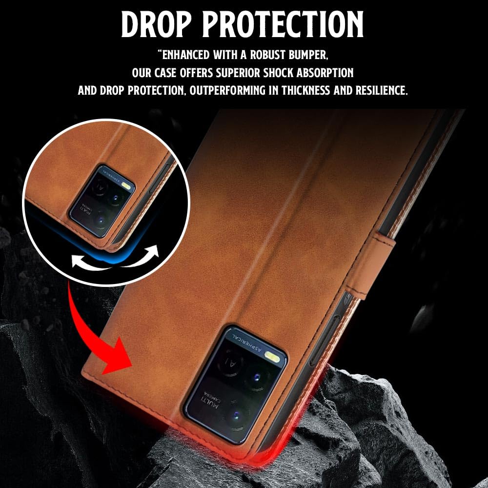Shock Proof Flip Cover Back Case for Vivo Y21 | Magnetic Wallet Leather Case with Stand