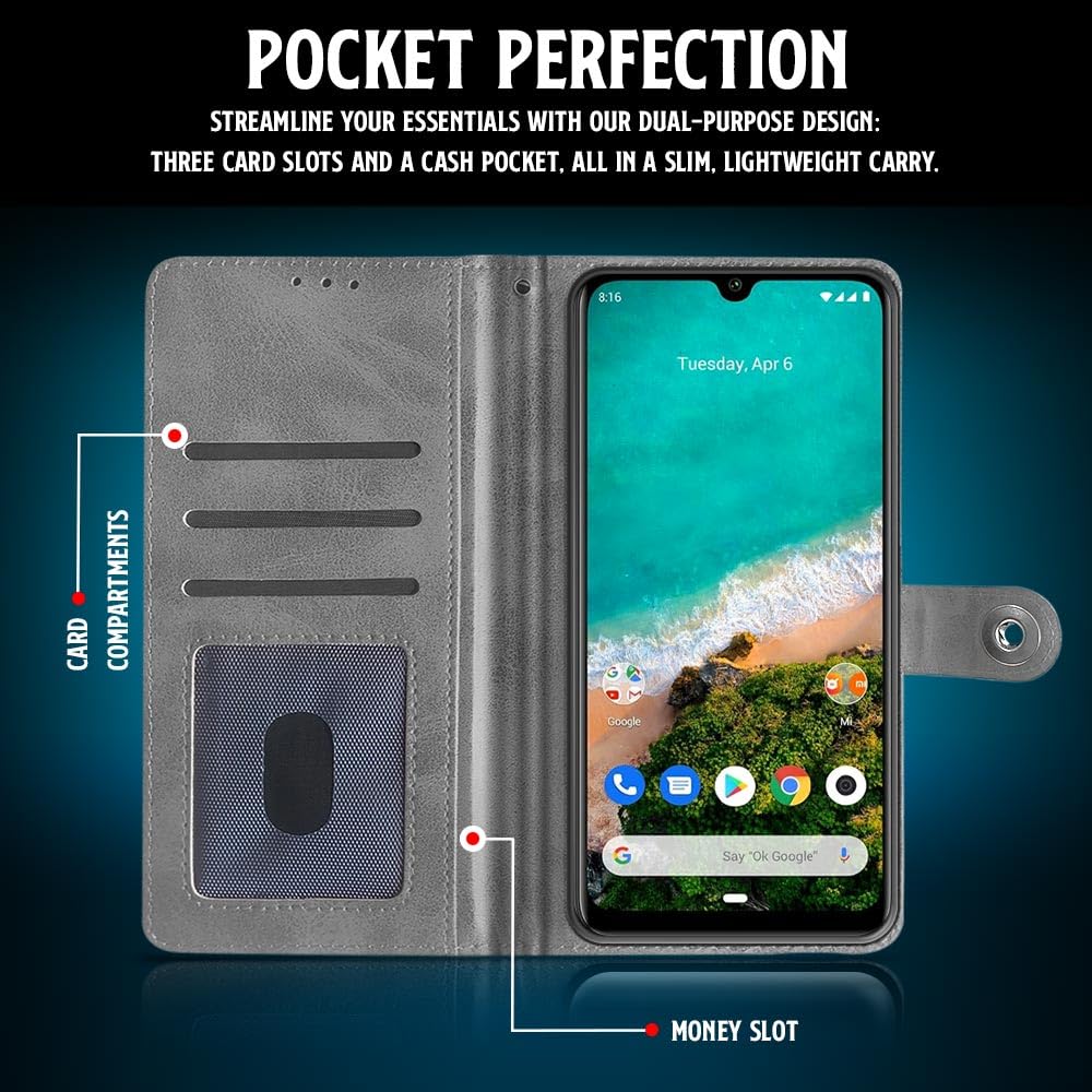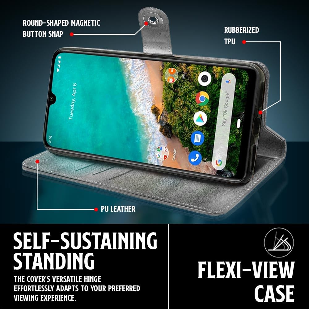 Shock Proof Flip Cover Back Case for Xiaomi Mi A3 | Magnetic Wallet Leather Case with Stand