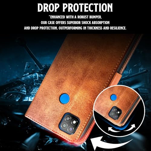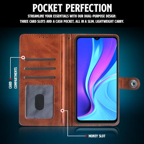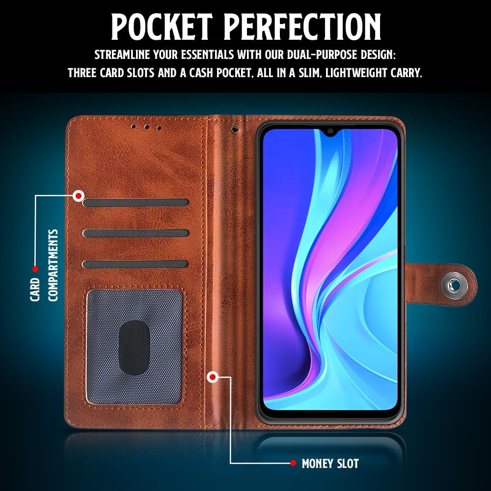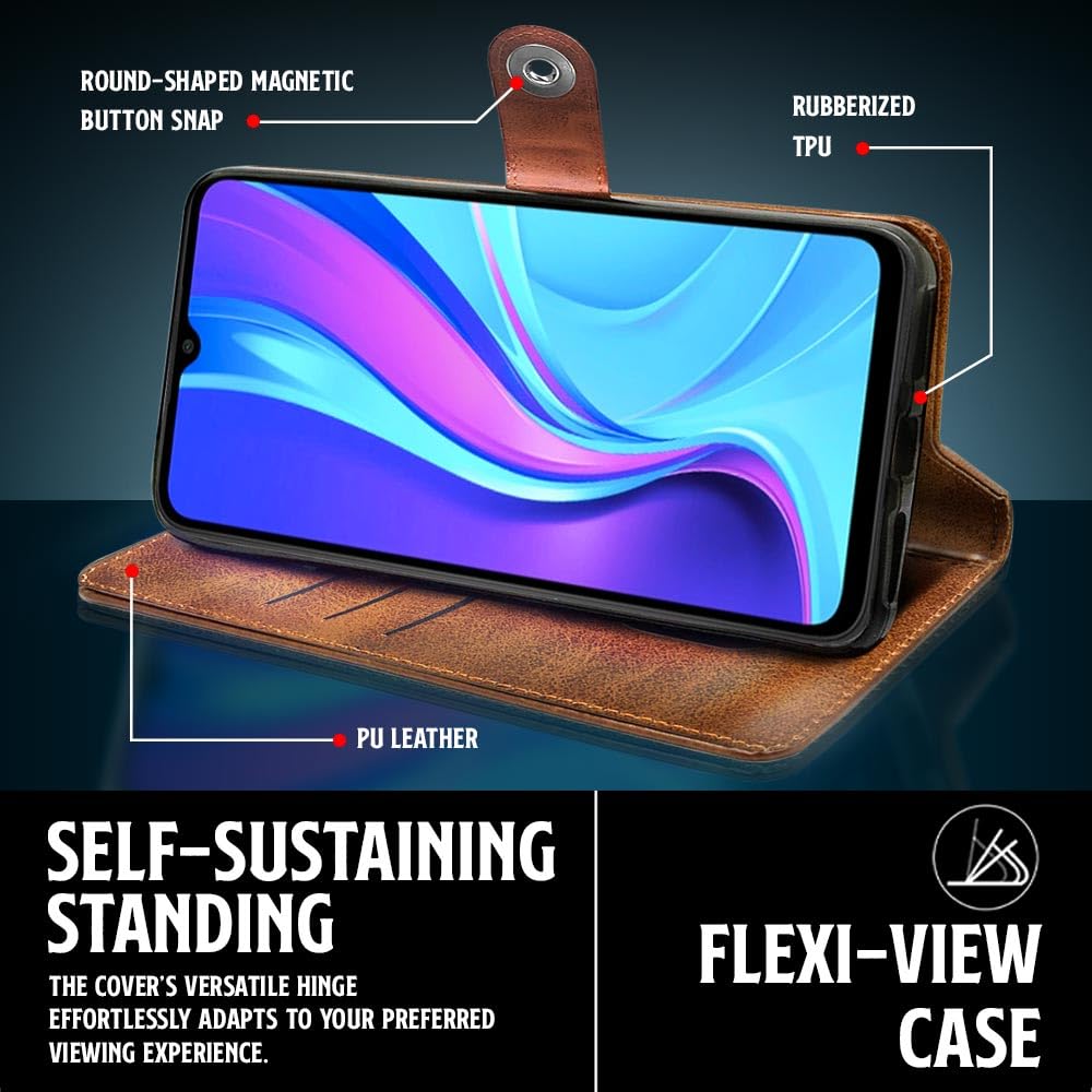 Shock Proof Flip Cover Back Case for Xiaomi Mi Redmi 9 | Magnetic Wallet Leather Case with Stand