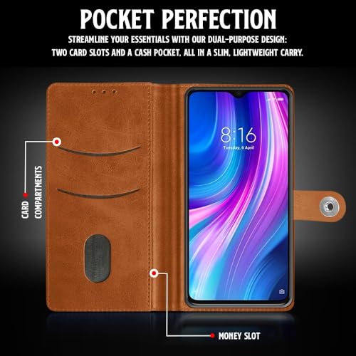 Shock Proof Flip Cover Back Case for Xiaomi Mi Redmi Note 8 Pro | Magnetic Wallet Leather Case with Stand