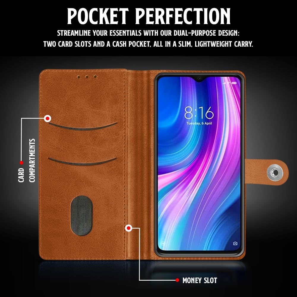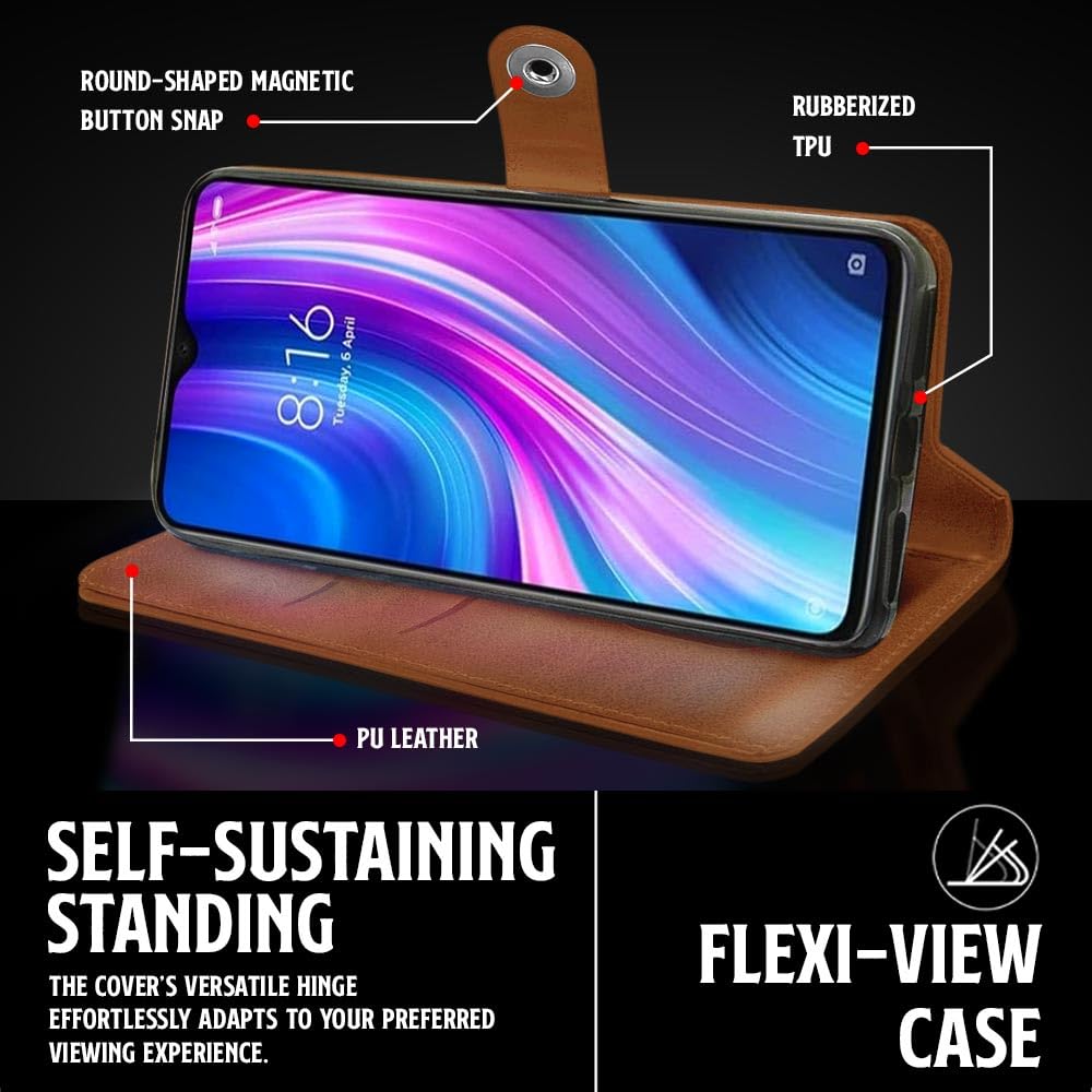 Buy premium shock proof flip cover back case for xiaomi mi redmi note 8 pro. Leather finish with magnetic flip closure, wallet pockets and stand support. Durable protection against drops and scratches with a perfect fit for xiaomi mi redmi note 8 pro.