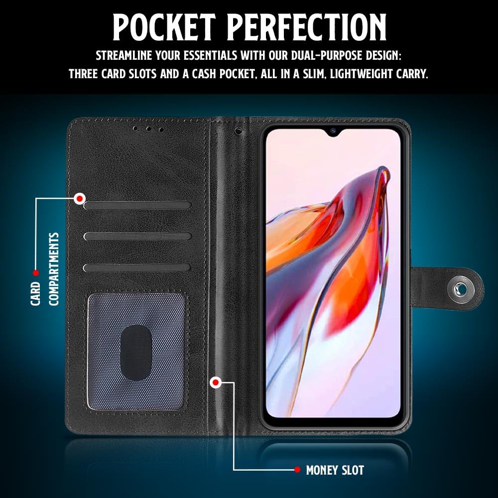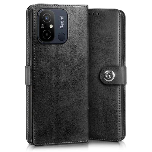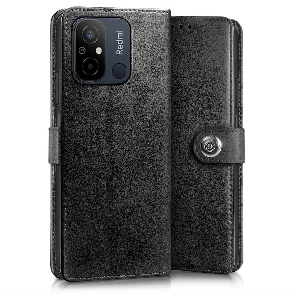 Buy premium shock proof flip cover back case for xiaomi redmi 12c. Leather finish with magnetic flip closure, wallet pockets and stand support. Durable protection against drops and scratches with a perfect fit for xiaomi redmi 12c.