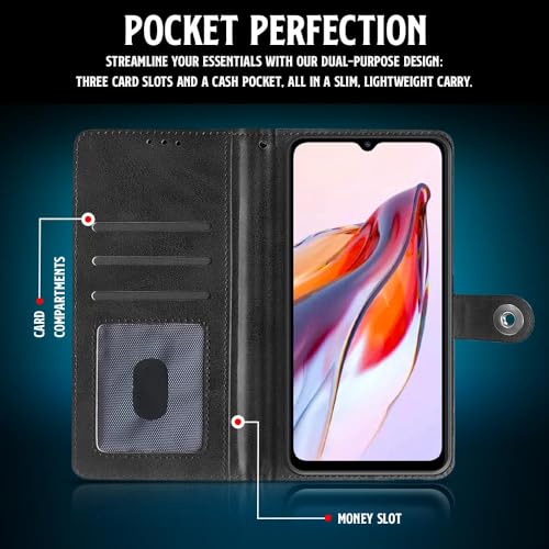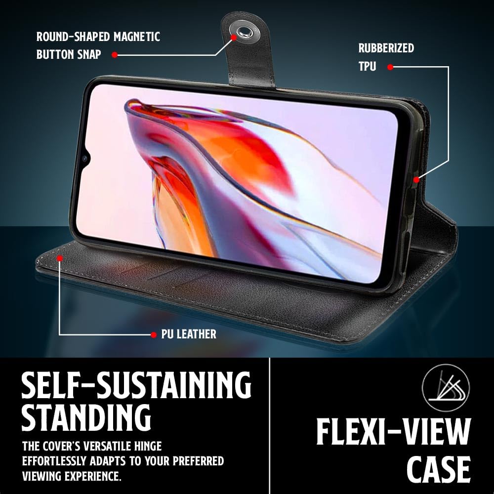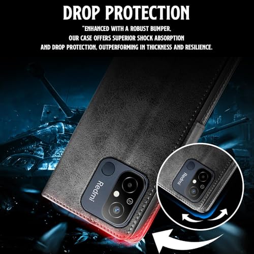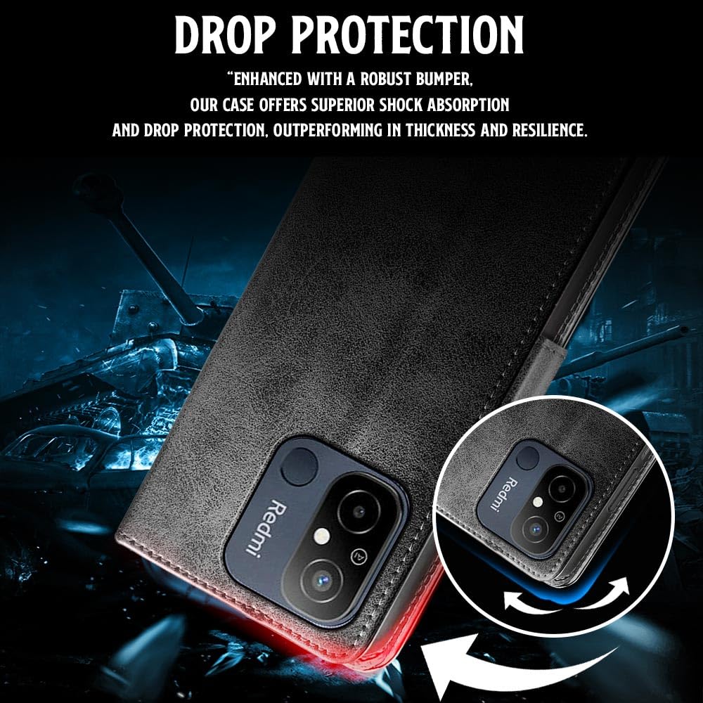 Shock Proof Flip Cover Back Case for Xiaomi Redmi 12C | Magnetic Wallet Leather Case with Stand