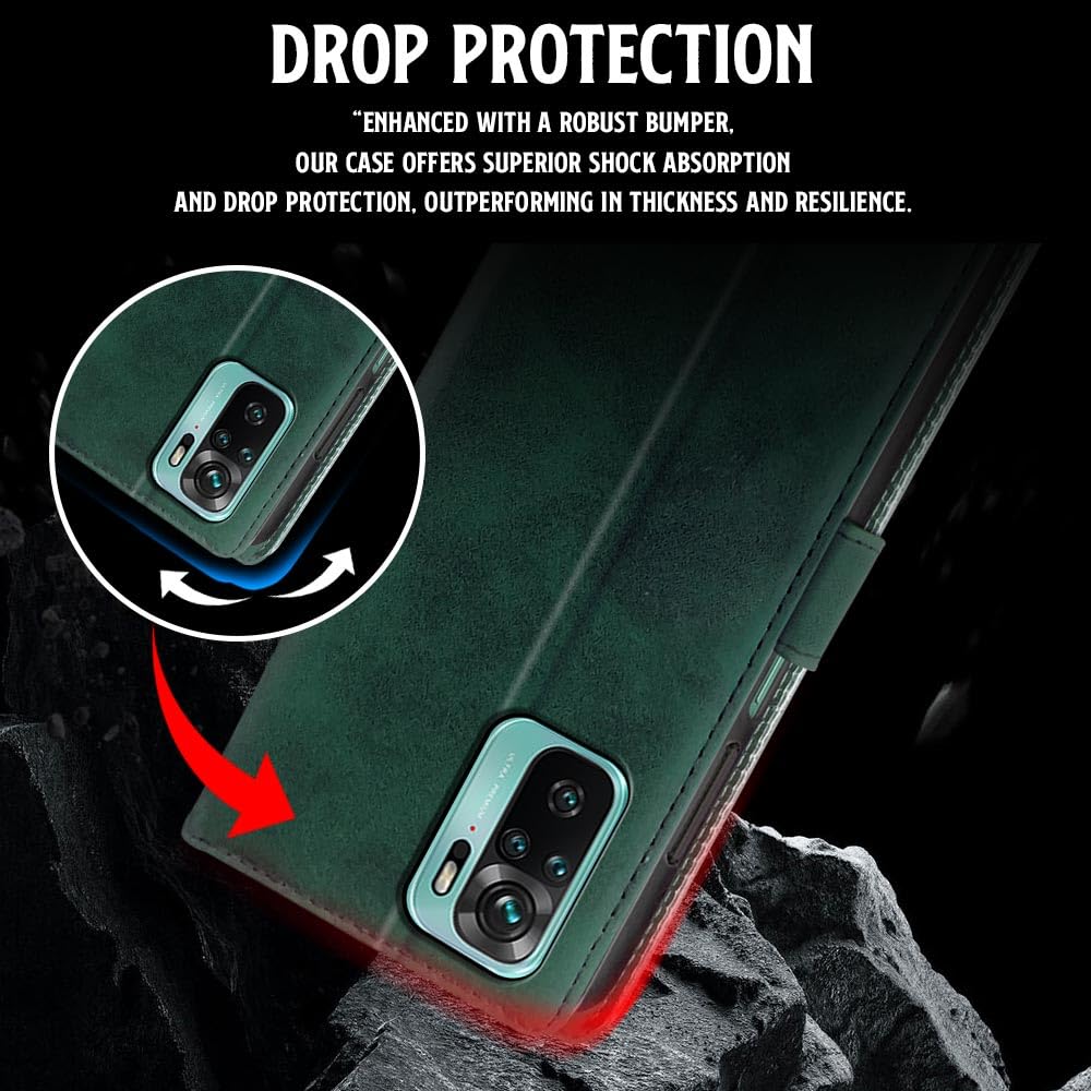 Shock Proof Flip Cover Back Case for Xiaomi Redmi Note 10 | Magnetic Wallet Leather Case with Stand