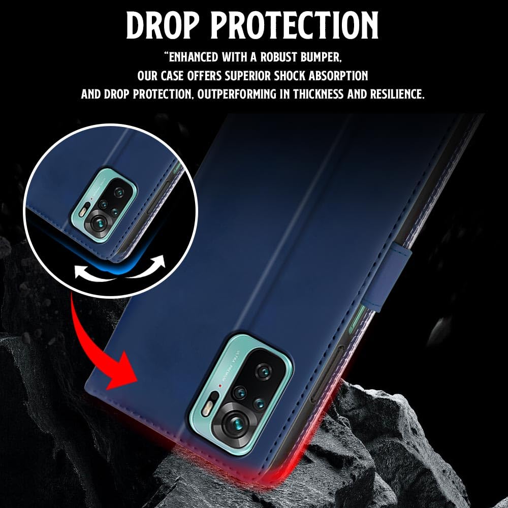 Shock Proof Flip Cover Back Case for Xiaomi Redmi Note 10 | Magnetic Wallet Leather Case with Stand