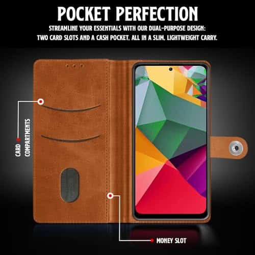 Buy premium shock proof flip cover back case for xiaomi redmi note 12 4g. Leather finish with magnetic flip closure, wallet pockets and stand support. Durable protection against drops and scratches with a perfect fit for xiaomi redmi note 12 4g.