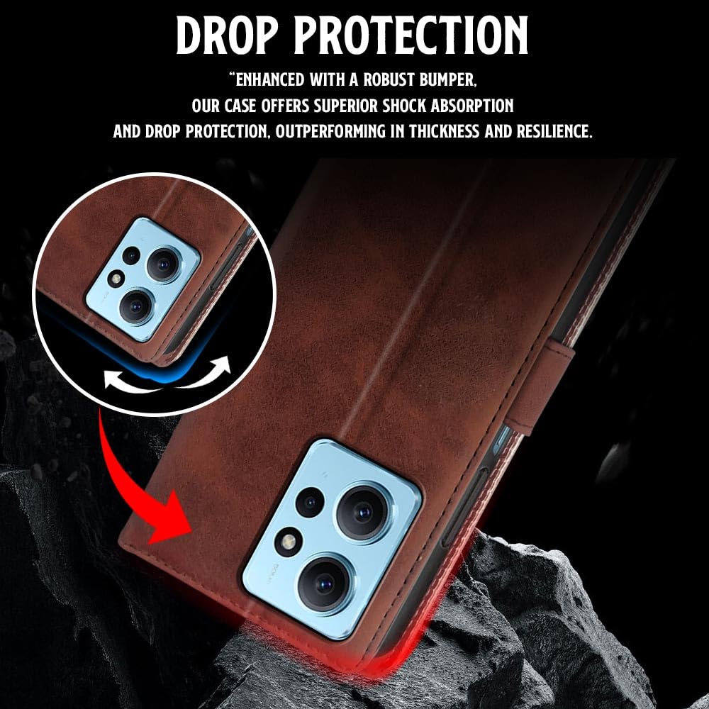 Shock Proof Flip Cover Back Case for Xiaomi Redmi Note 12 4G | Magnetic Wallet Leather Case with Stand