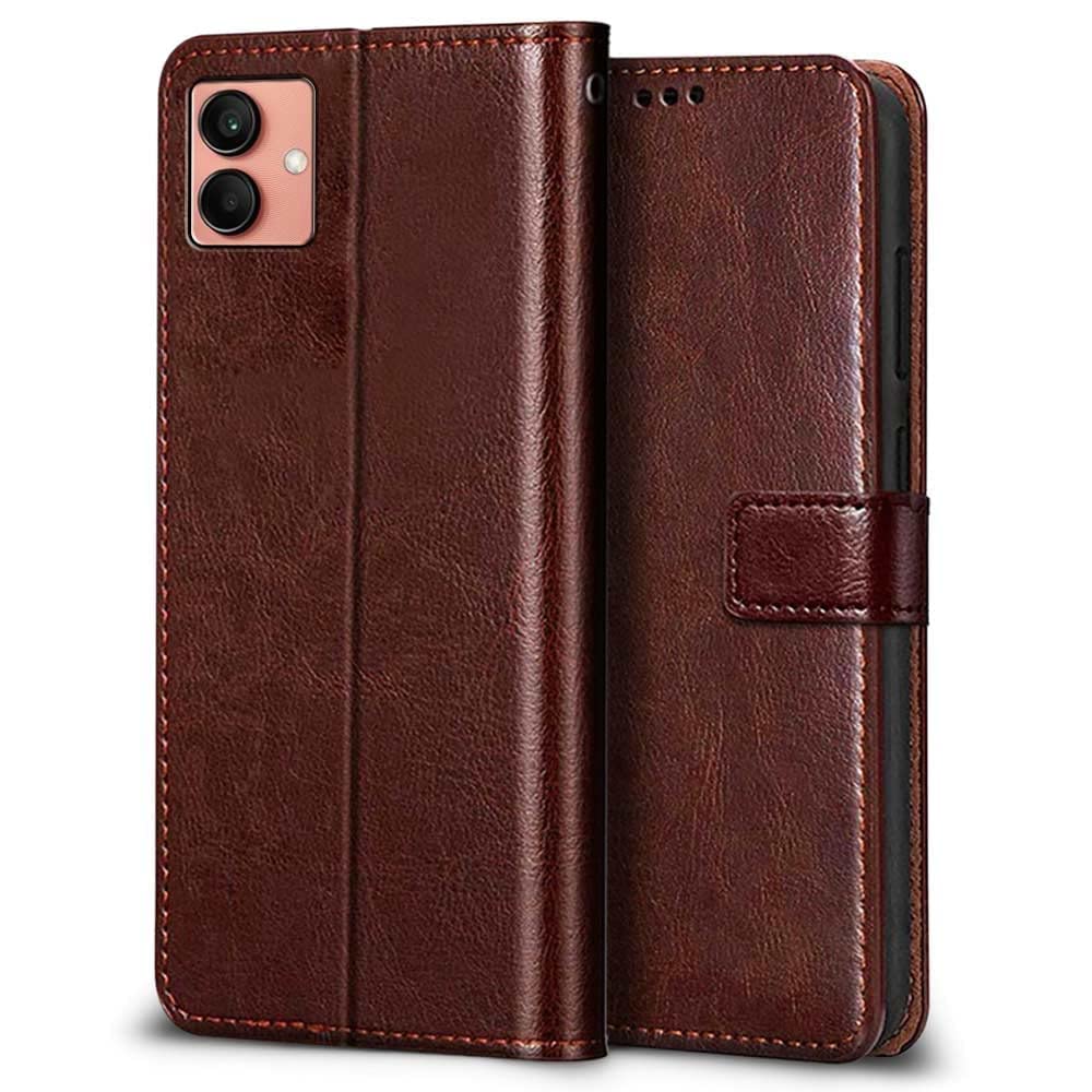 Buy premium shock proof flip cover back case for samsung galaxy a04. Leather finish with magnetic flip closure, wallet pockets and stand support. Durable protection against drops and scratches with a perfect fit for samsung galaxy a04.