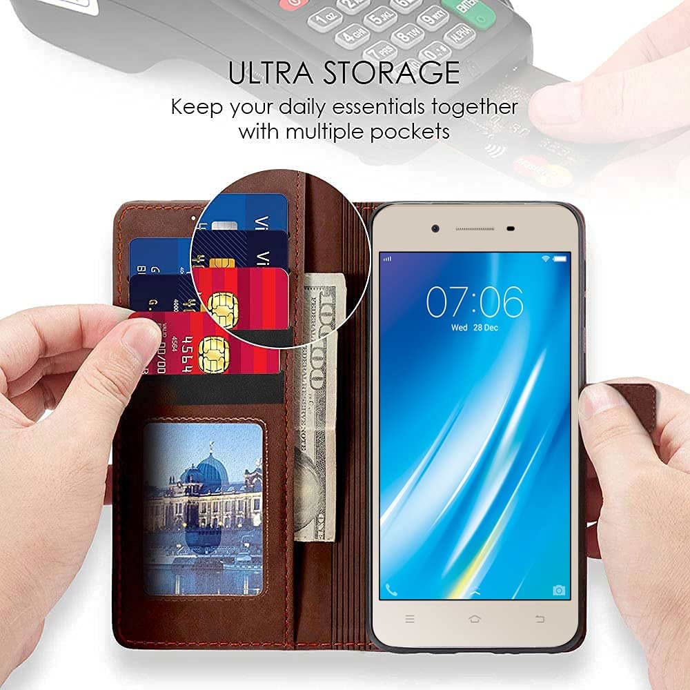 Shock Proof Flip Cover Back Case for Vivo Y53 | Magnetic Wallet Leather Case with Stand