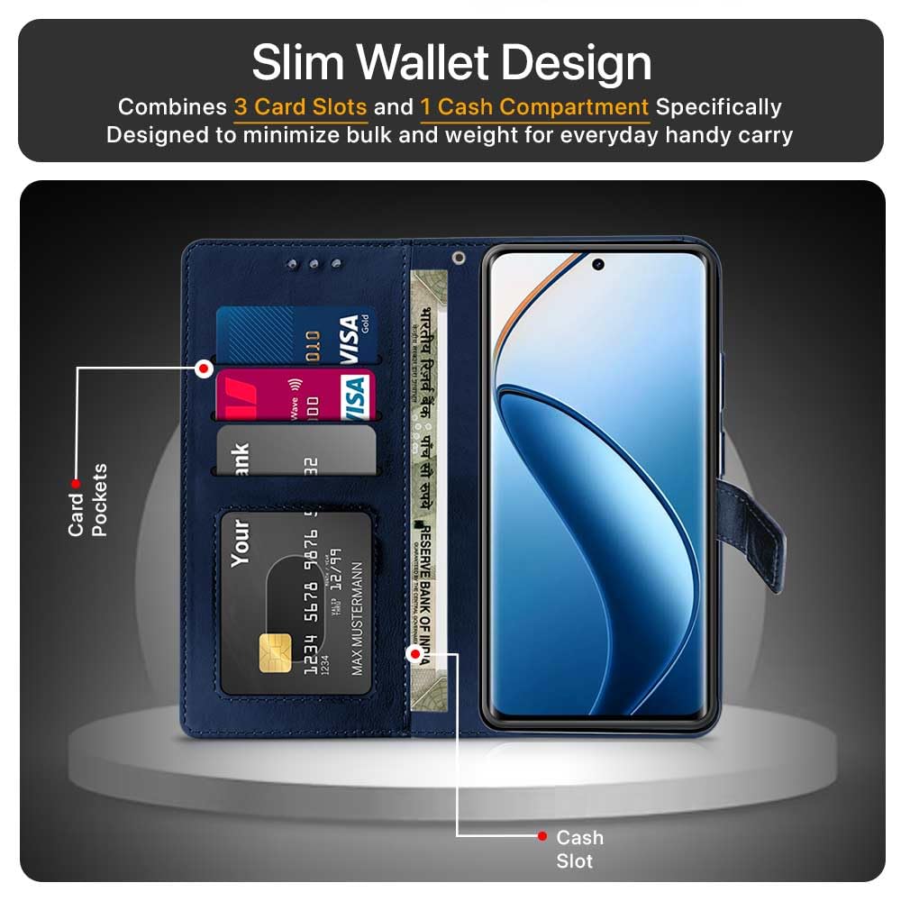 Shock Proof Flip Cover Back Case for Realme 12 Pro 5G Plus | Magnetic Wallet Leather Case with Stand