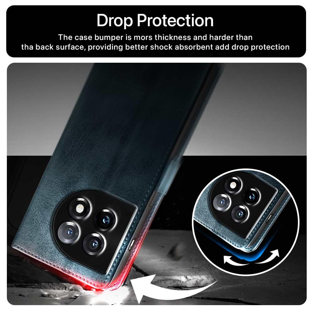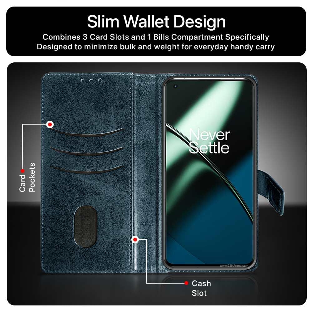 Shock Proof Flip Cover Back Case for 1+ Oneplus 11 5G | Magnetic Wallet Leather Case with Stand