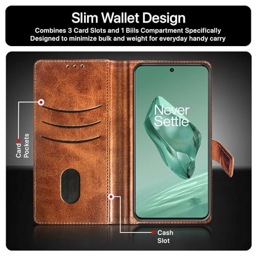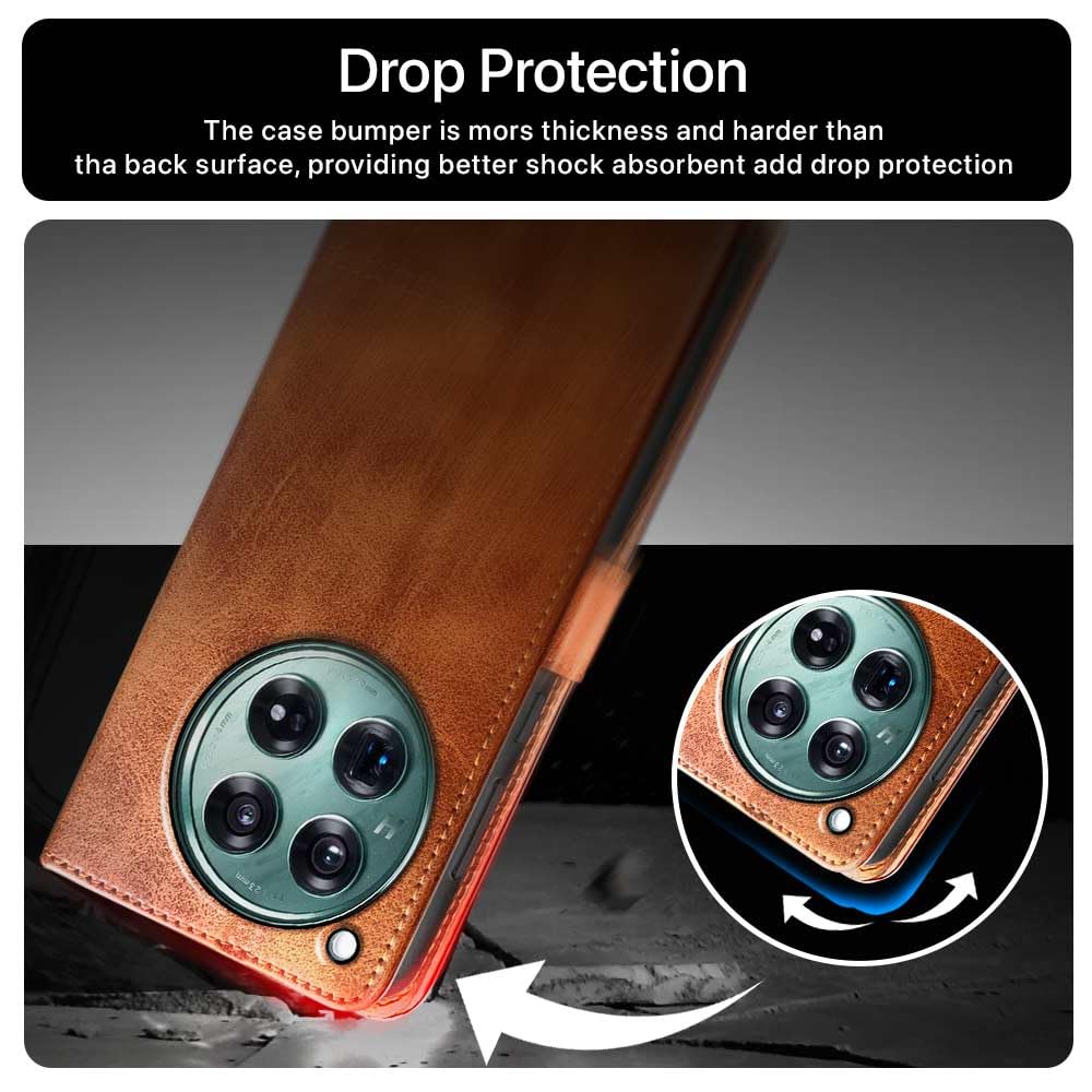Shock Proof Flip Cover Back Case for 1+ Oneplus 12 5G | Magnetic Wallet Leather Case with Stand