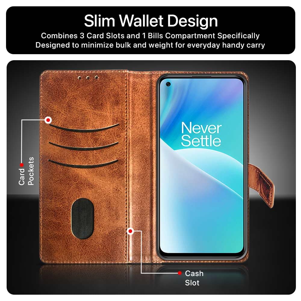 Shock Proof Flip Cover Back Case for 1+ Oneplus Nord 2T | Magnetic Wallet Leather Case with Stand