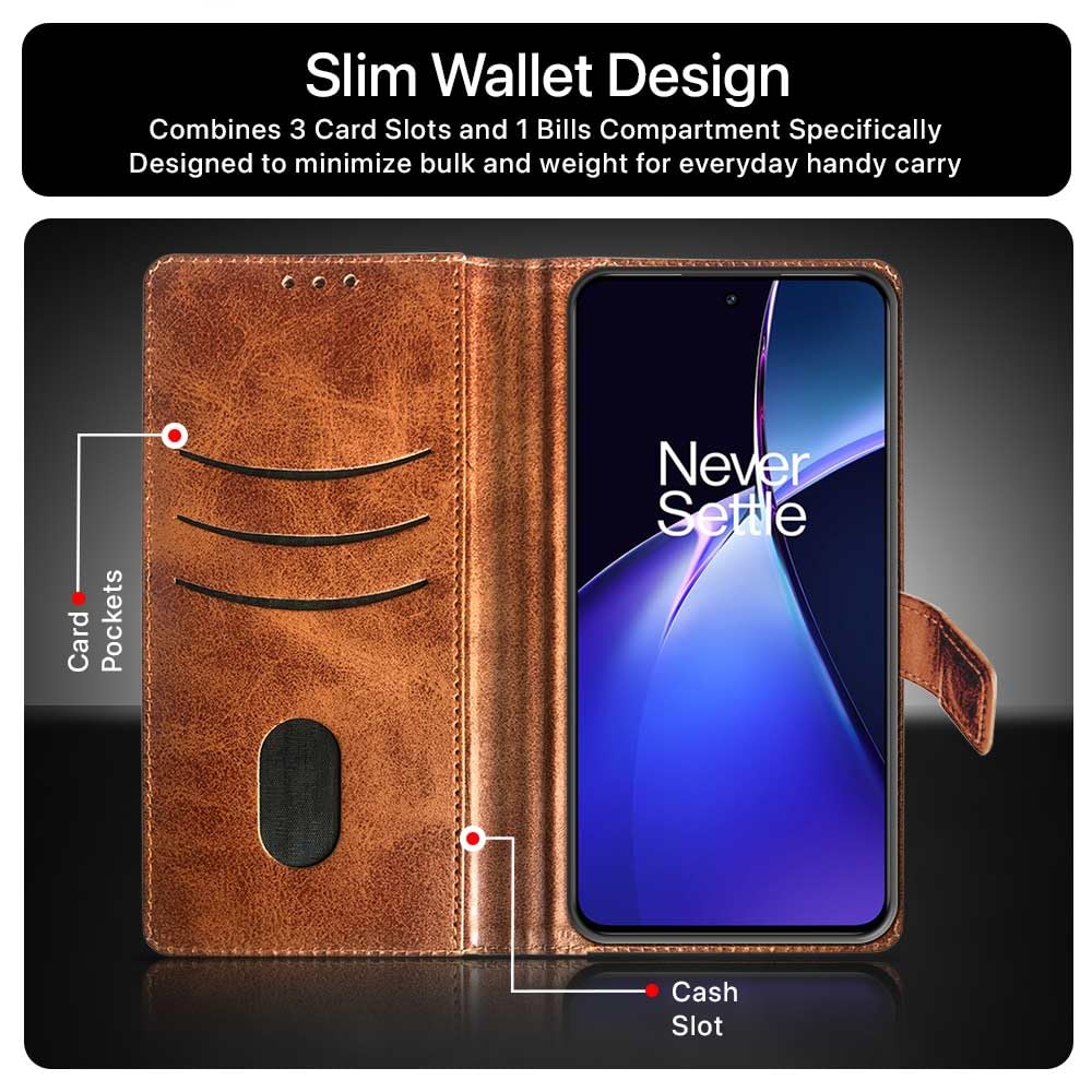 Shock Proof Flip Cover Back Case for 1+ Oneplus Nord 4 5G | Magnetic Wallet Leather Case with Stand