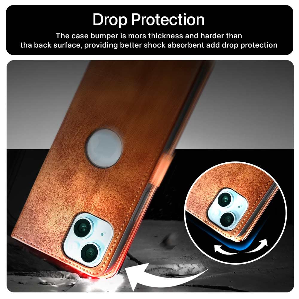 Shock Proof Flip Cover Back Case for Apple Iphone 15 Plus | Magnetic Wallet Leather Case with Stand