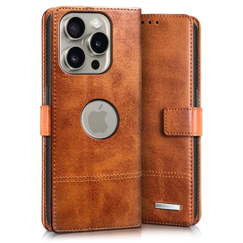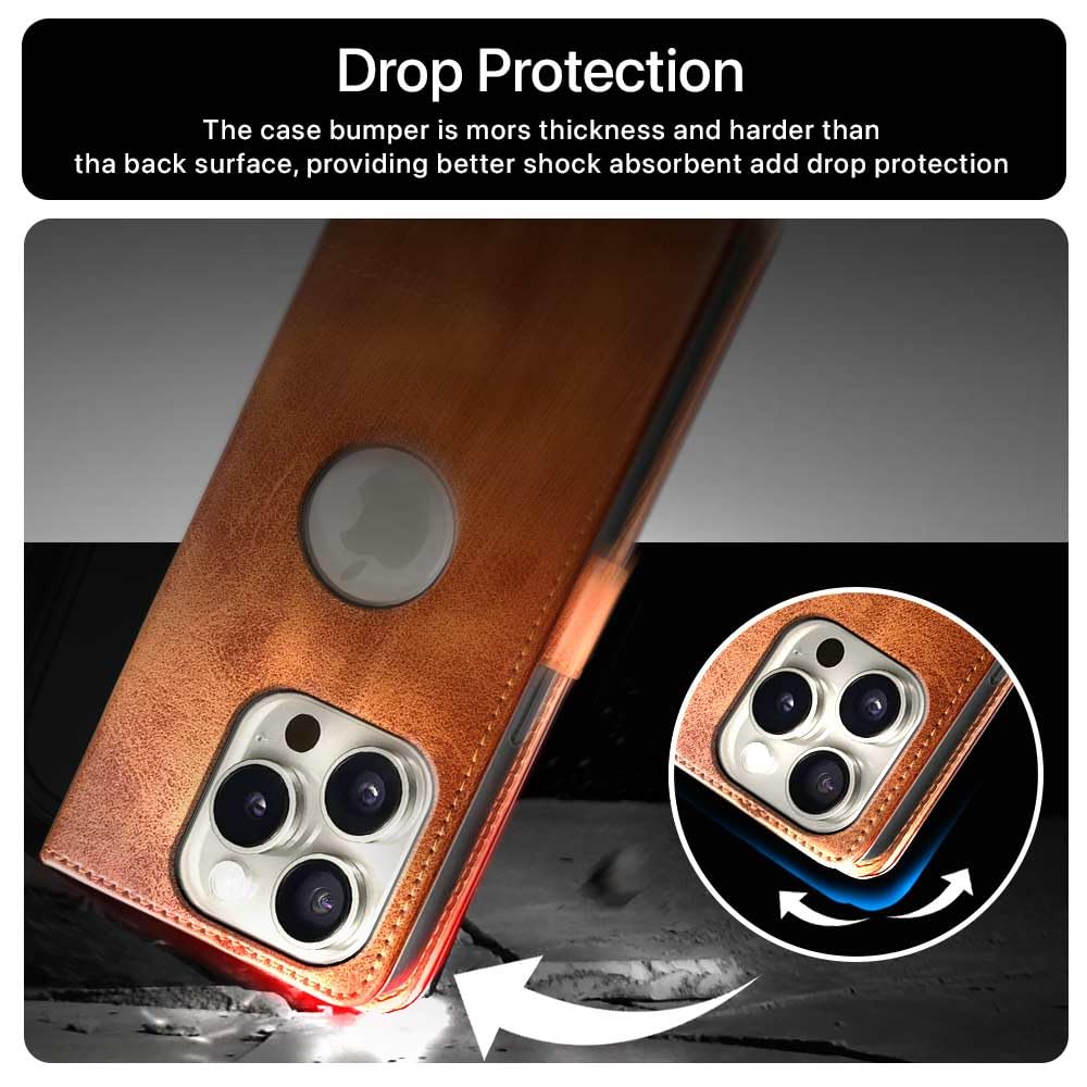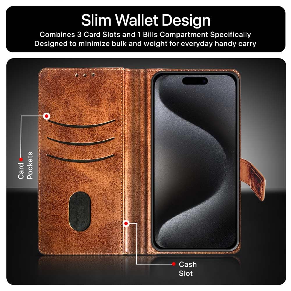 Shock Proof Flip Cover Back Case for Apple Iphone 15 Pro | Magnetic Wallet Leather Case with Stand