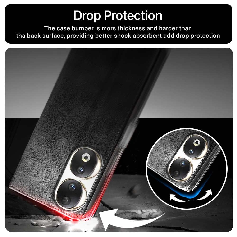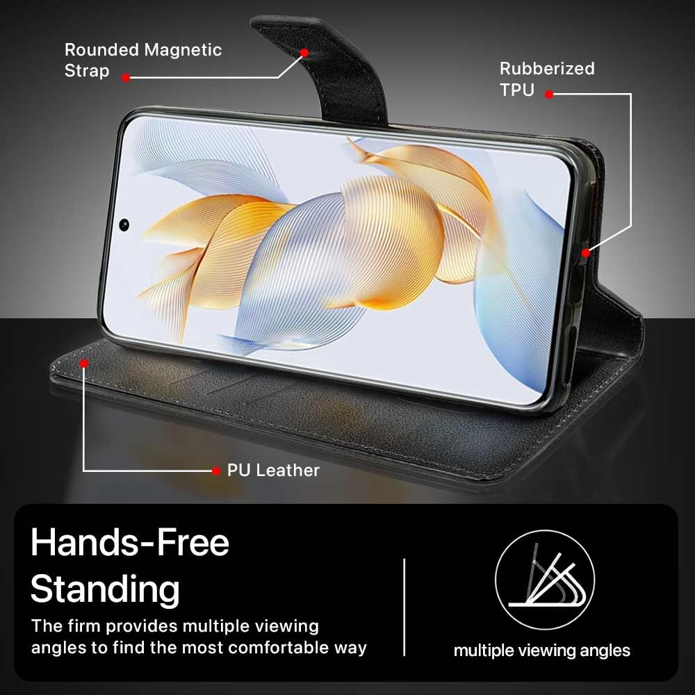 Shock Proof Flip Cover Back Case for Honor 90 5G | Magnetic Wallet Leather Case with Stand