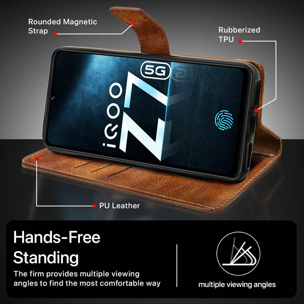Shock Proof Flip Cover Back Case for Iqoo Z7 5G | Magnetic Wallet Leather Case with Stand