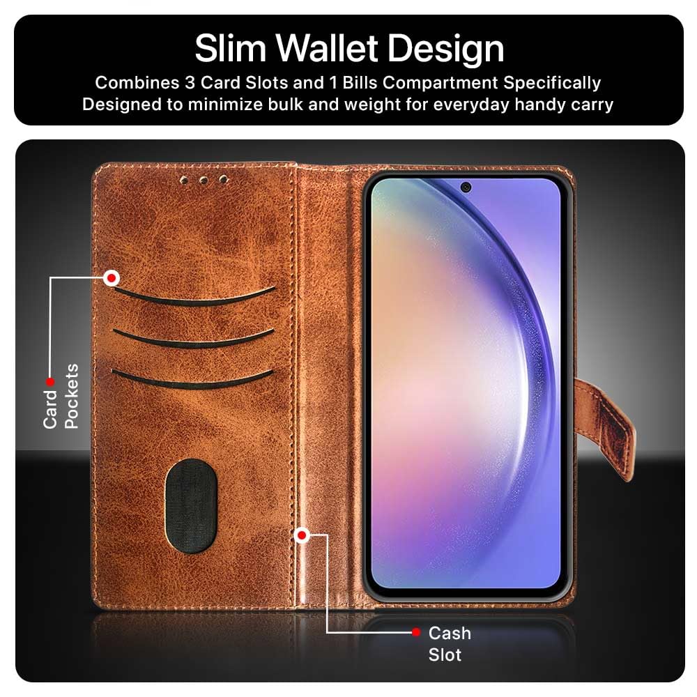 Shock Proof Flip Cover Back Case for Samsung Galaxy A54 | Magnetic Wallet Leather Case with Stand
