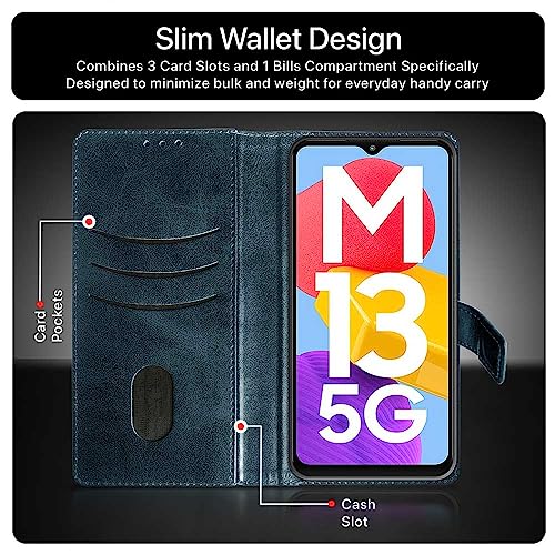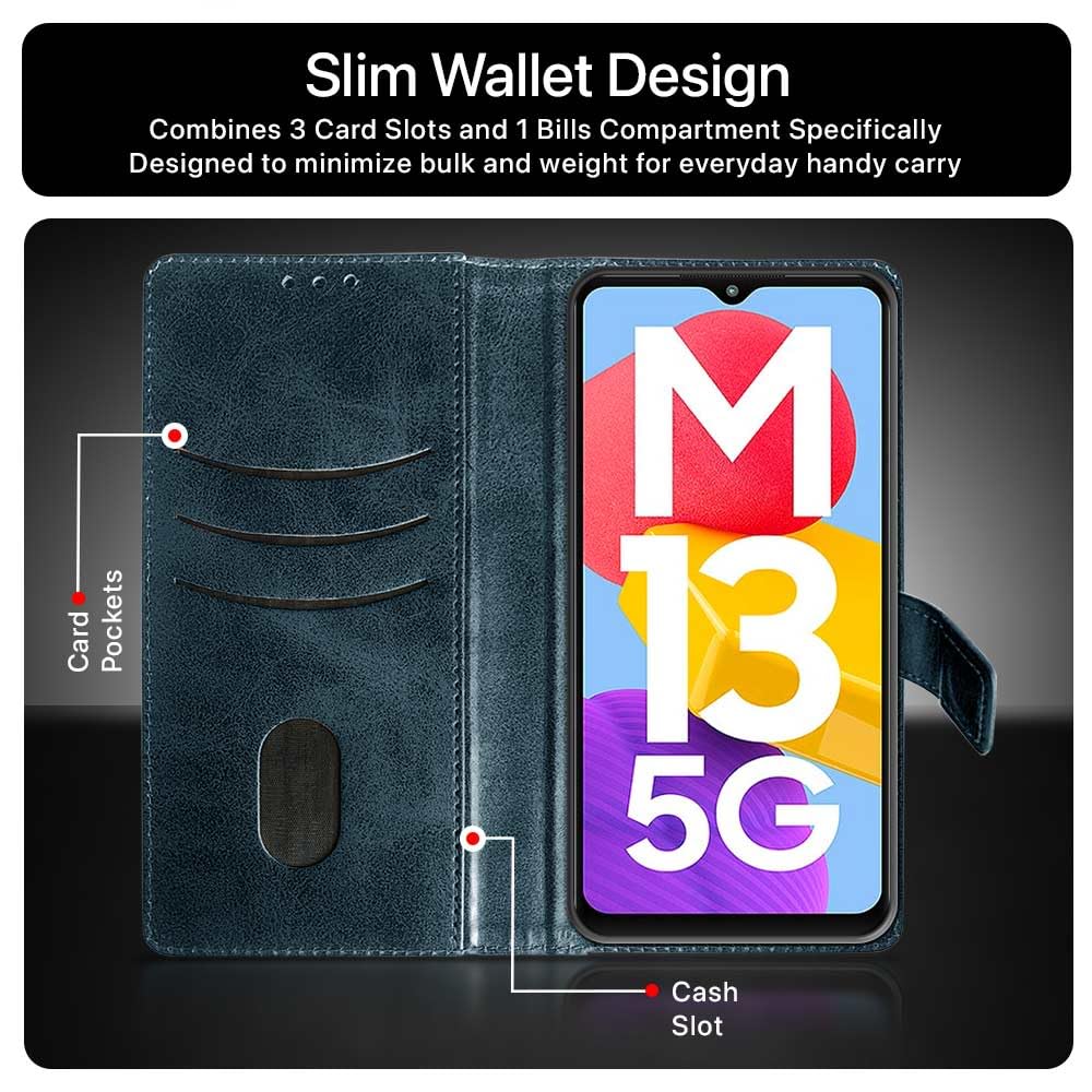 Shock Proof Flip Cover Back Case for Samsung Galaxy M13 5G | Magnetic Wallet Leather Case with Stand