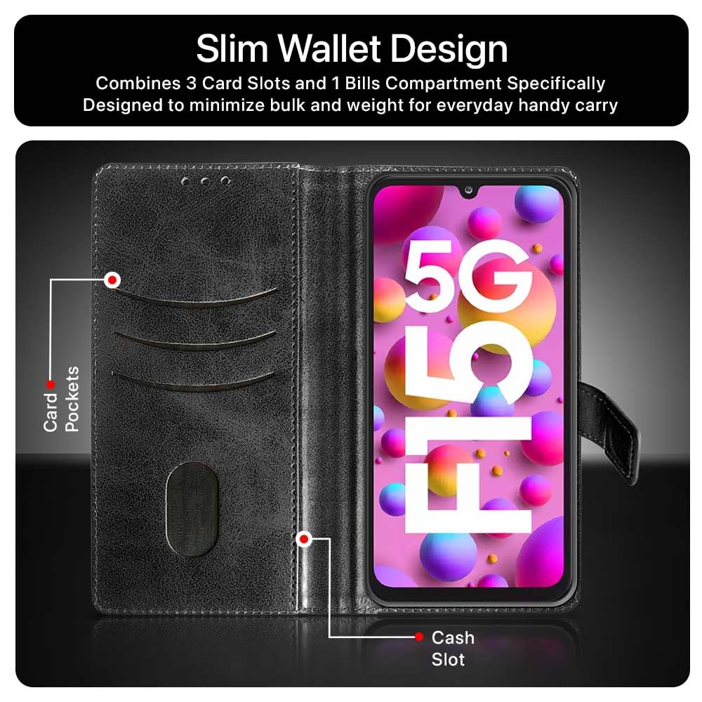 Shock Proof Flip Cover Back Case for Samsung Galaxy M15 5G Prime Edition | Magnetic Wallet Leather Case with Stand