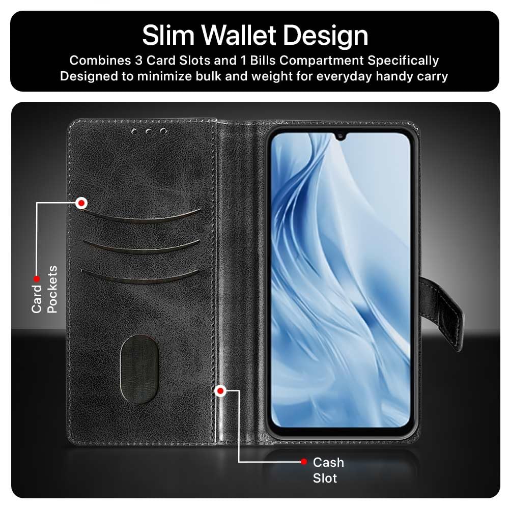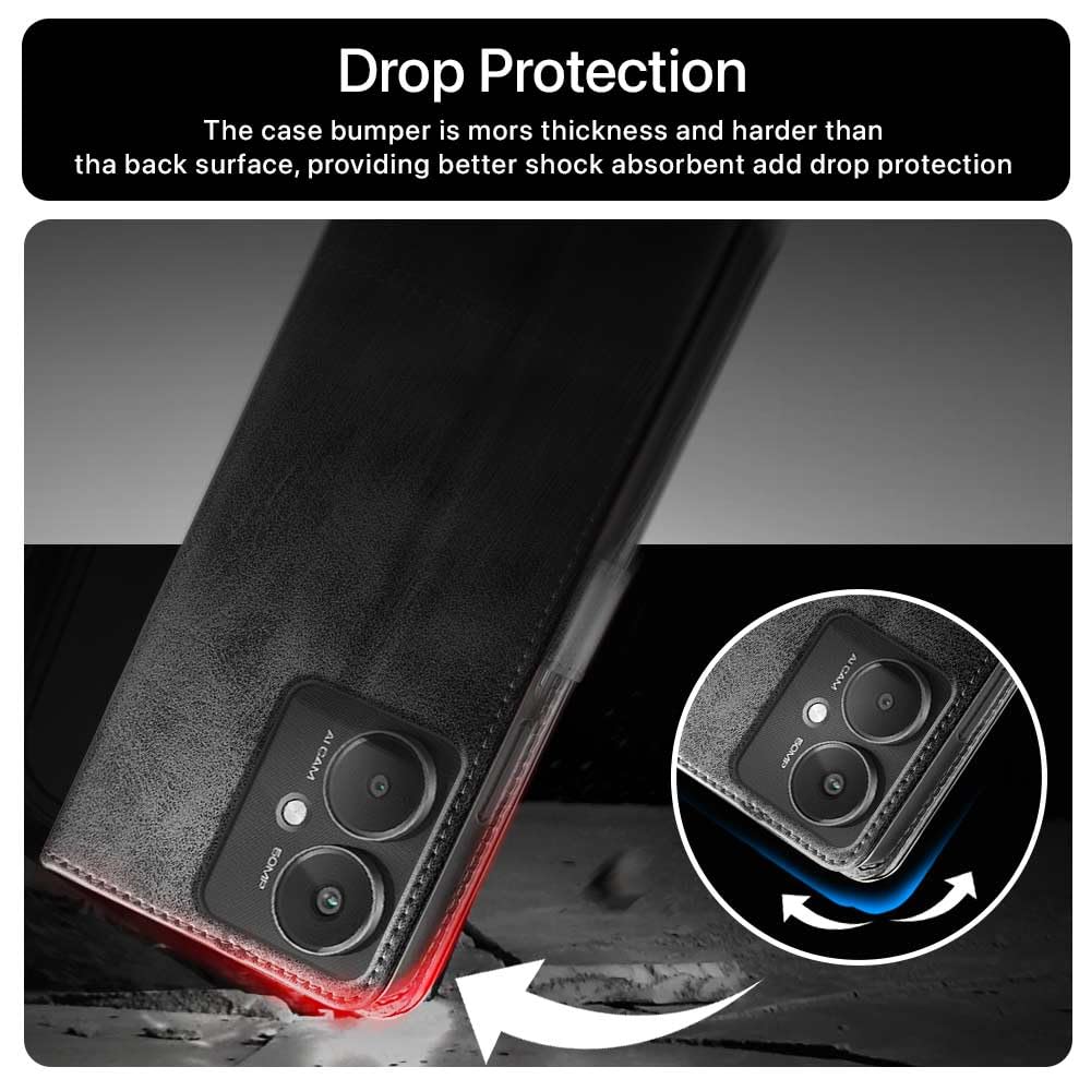 Shock Proof Flip Cover Back Case for Xiaomi Mi Redmi 13C 5G | Magnetic Wallet Leather Case with Stand