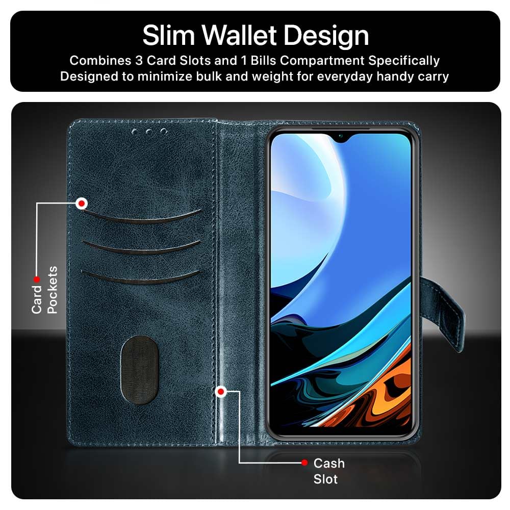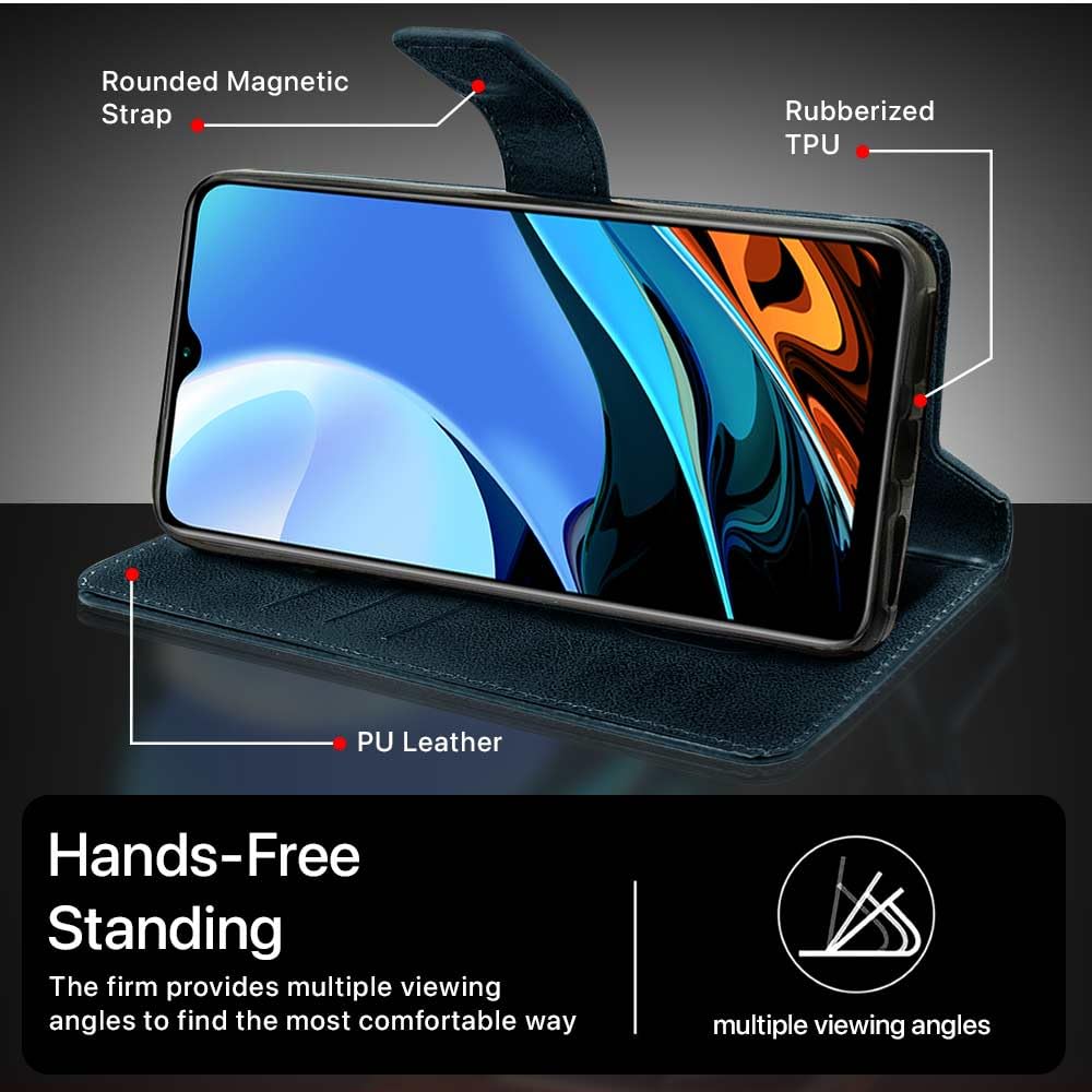 Shock Proof Flip Cover Back Case for Xiaomi Mi Redmi 9 Power | Magnetic Wallet Leather Case with Stand