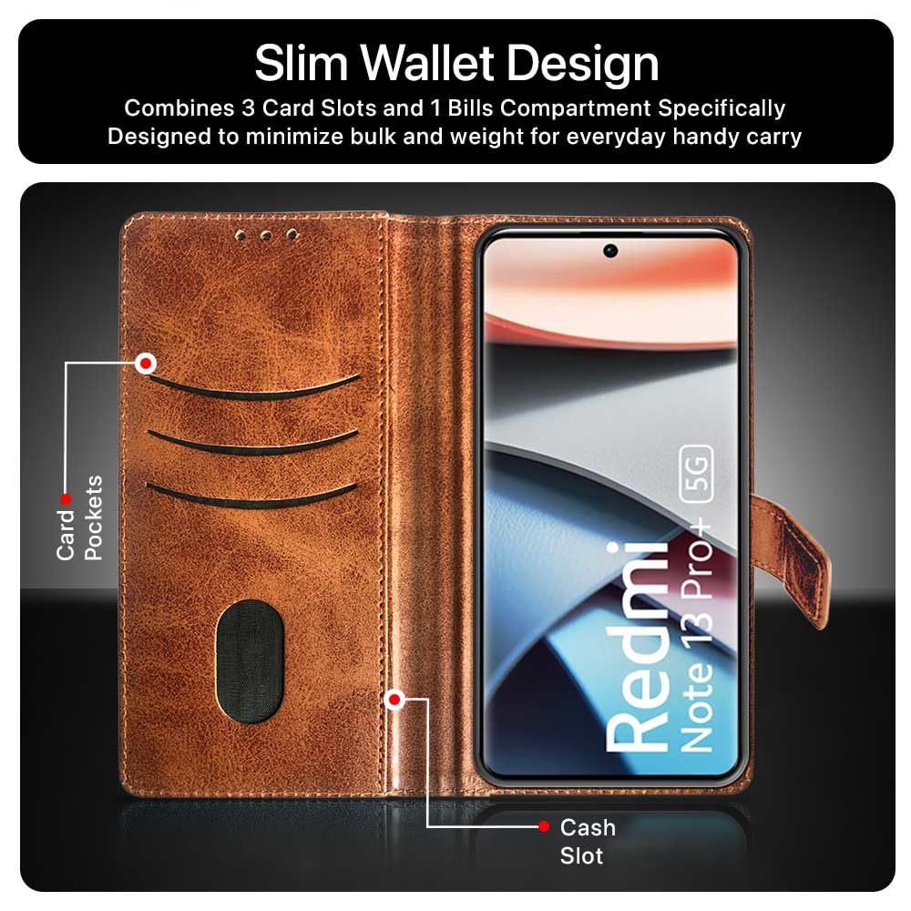 Shock Proof Flip Cover Back Case for Xiaomi Mi Redmi Note 13 Pro Plus 5G | Magnetic Wallet Leather Case with Stand