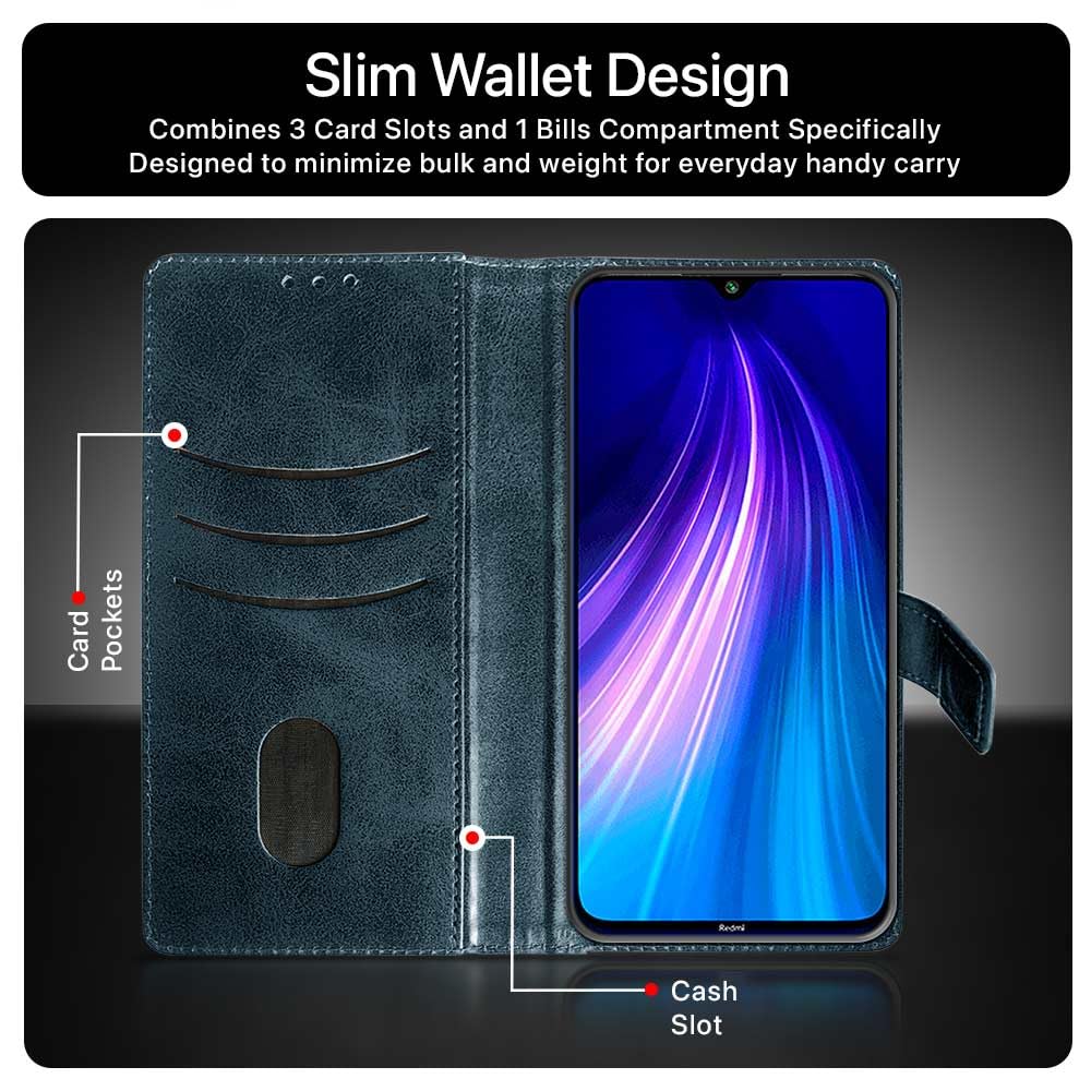 Shock Proof Flip Cover Back Case for Xiaomi Mi Redmi Note 8 | Magnetic Wallet Leather Case with Stand