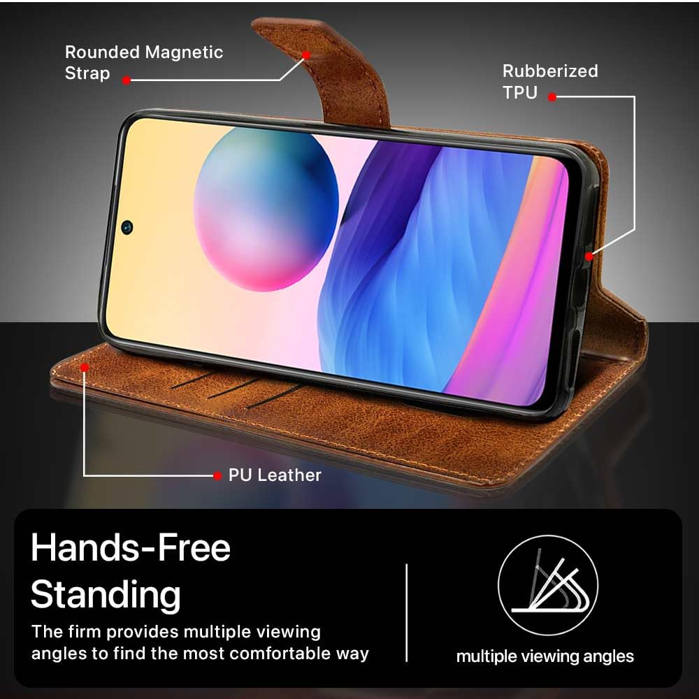Shock Proof Flip Cover Back Case for Xiaomi Redmi Note 10 | Magnetic Wallet Leather Case with Stand
