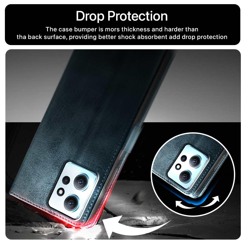 Shock Proof Flip Cover Back Case for Xiaomi Redmi Note 12 4G | Magnetic Wallet Leather Case with Stand