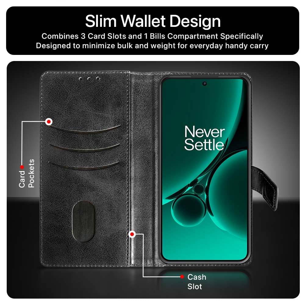 Shock Proof Flip Cover Back Case for 1+ Oneplus Nord 4 5G | Magnetic Wallet Leather Case with Stand
