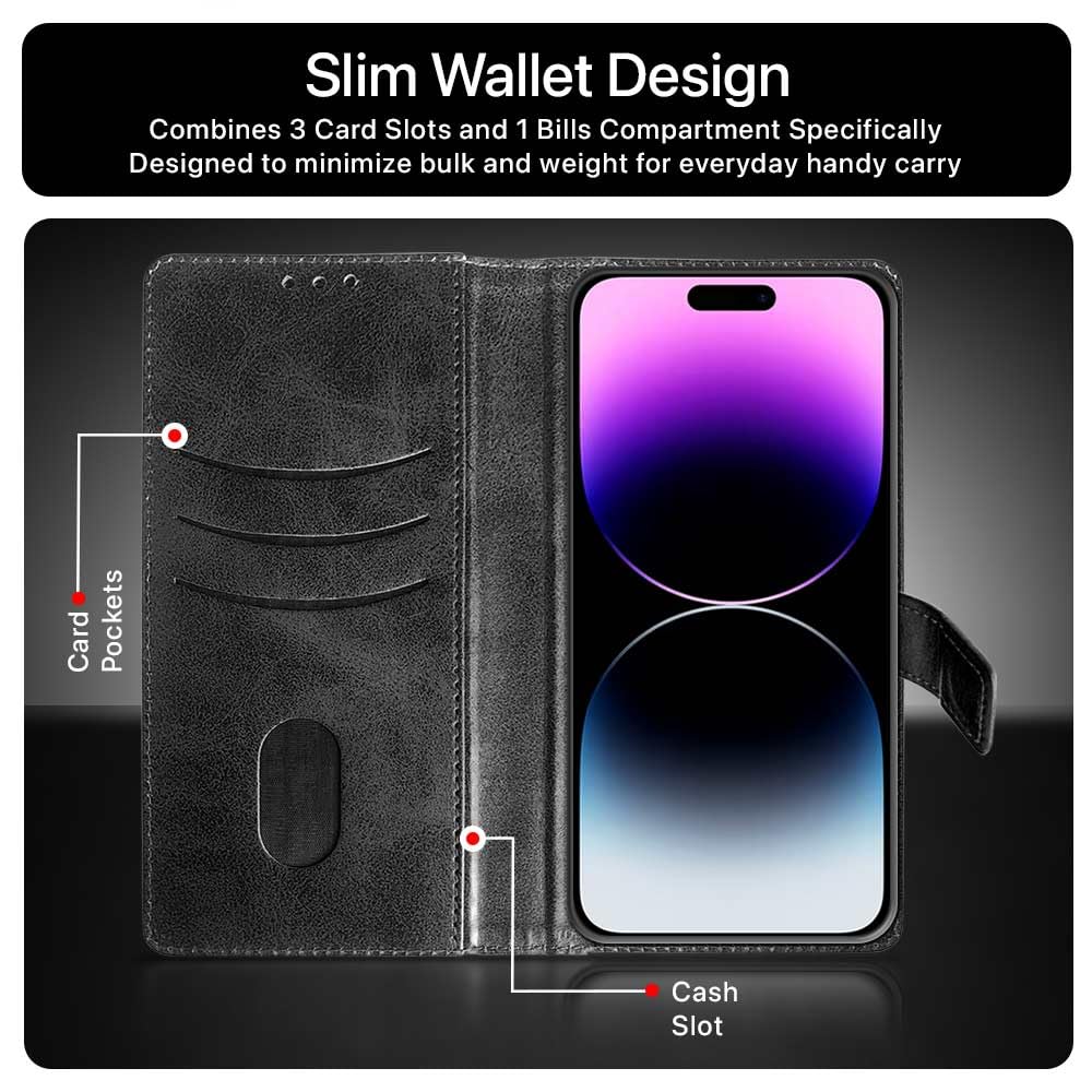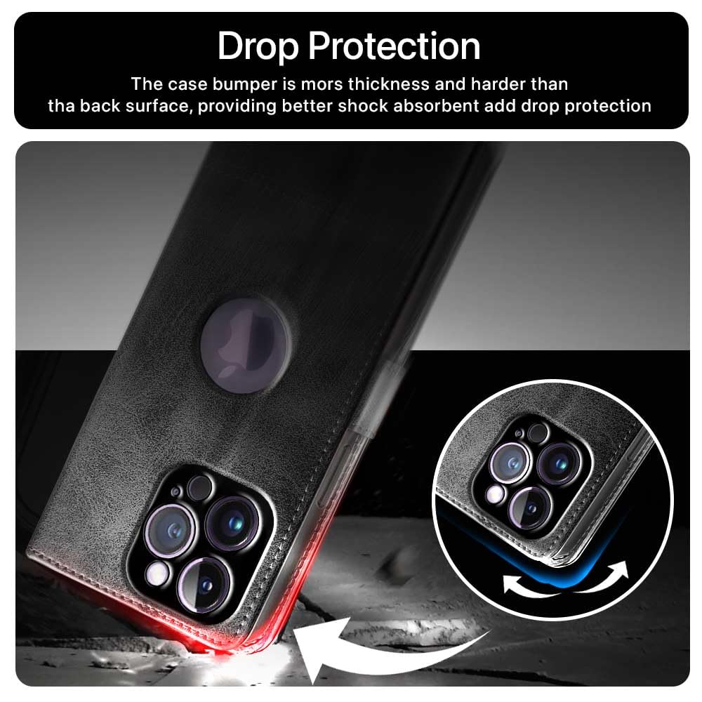 Shock Proof Flip Cover Back Case for Apple Iphone 14 Pro Max | Magnetic Wallet Leather Case with Stand