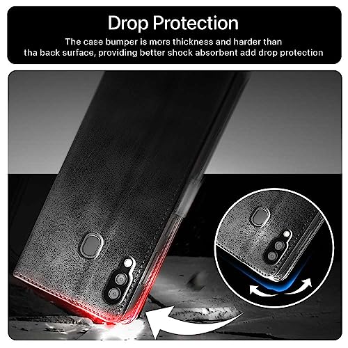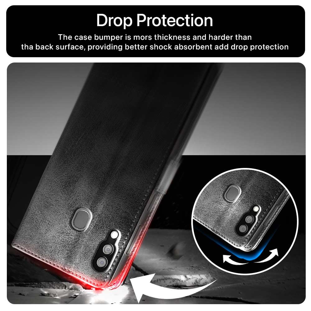 Shock Proof Flip Cover Back Case for Samsung Galaxy A20 | Magnetic Wallet Leather Case with Stand