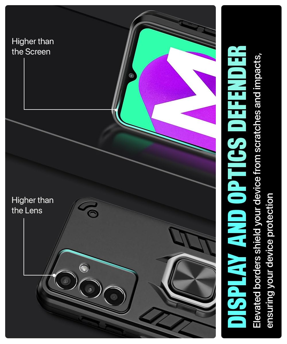 The Shockproof Back Case Mobile Cover for Samsung Galaxy M13 4G | F13 4G | Bumper Back Cover (Tough Armor | Hybrid PC + TPU | Full Protection with Ring Holder & in-Built Kickstand | Black) is designed with premium quality materials to provide superior protection, durability, and style for your smartphone. It offers a perfect balance between functionality and aesthetics, ensuring your device stays safe from scratches, impacts, and daily wear. Engineered with precision, it features accurate cutouts for ports, buttons, and cameras, making it highly convenient for everyday use. The slim and lightweight design ensures that your device retains its sleek profile without adding unnecessary bulk. Whether it is a nano film tempered glass, a hybrid back case, or a camera lens protector, each product is created with attention to detail to enhance the user experience and extend the life of your smartphone. The material used ensures long-lasting clarity, anti-scratch performance, and resistance against fingerprints and smudges. It is the ideal choice for users who want both style and substance in their smartphone accessories. This product from reflects innovation and craftsmanship, making it a reliable accessory that safeguards your investment while maintaining modern appeal.