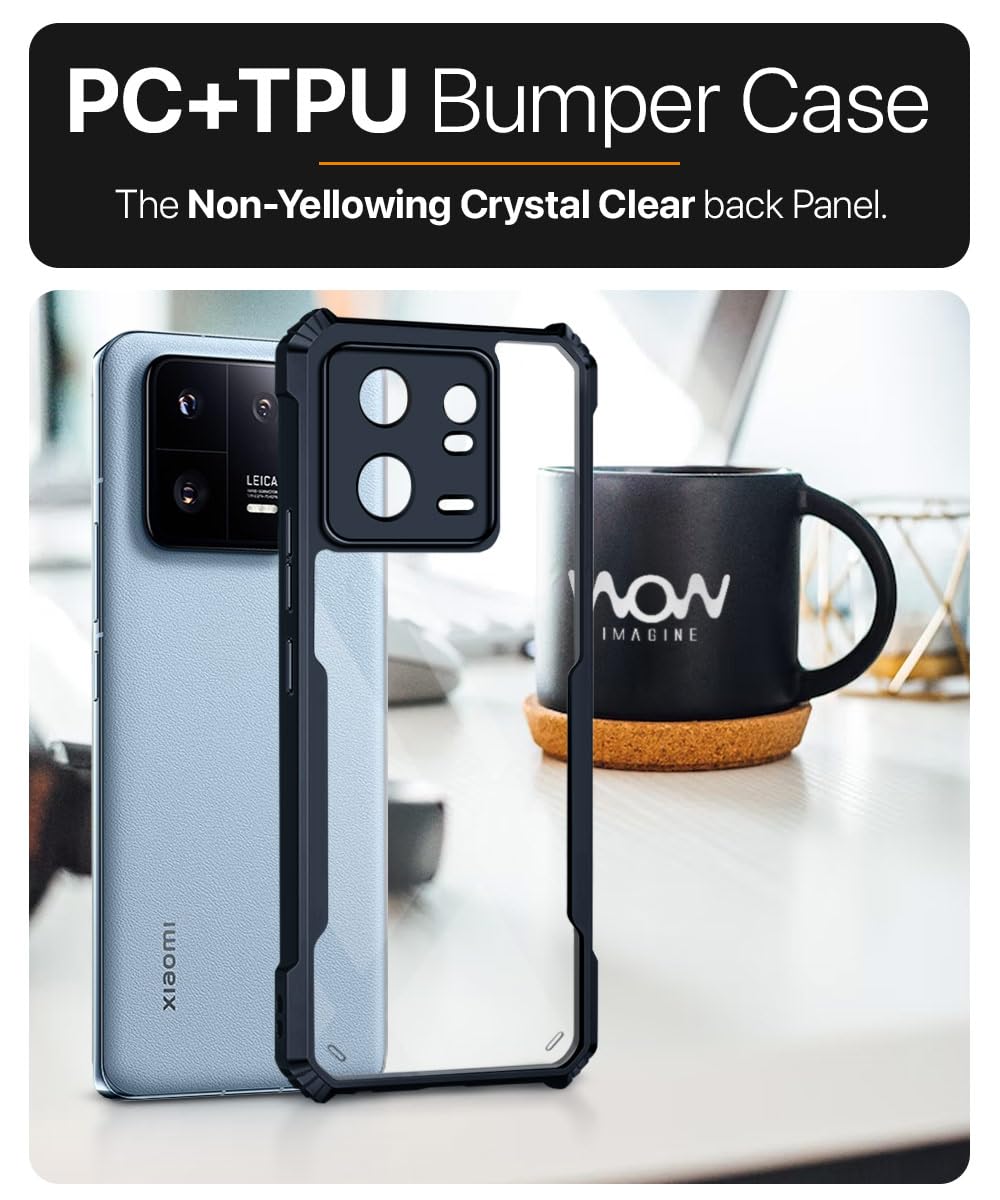 The Shockproof Crystal Clear Back Cover Case for Xiaomi 13 Pro 5G | 360 Degree Protection | Protective Design | Transparent Back Cover Case for Xiaomi Mi 13 Pro 5G (Blue Bumper) is designed with premium quality materials to provide superior protection, durability, and style for your smartphone. It offers a perfect balance between functionality and aesthetics, ensuring your device stays safe from scratches, impacts, and daily wear. Engineered with precision, it features accurate cutouts for ports, buttons, and cameras, making it highly convenient for everyday use. The slim and lightweight design ensures that your device retains its sleek profile without adding unnecessary bulk. Whether it is a nano film tempered glass, a hybrid back case, or a camera lens protector, each product is created with attention to detail to enhance the user experience and extend the life of your smartphone. The material used ensures long-lasting clarity, anti-scratch performance, and resistance against fingerprints and smudges. It is the ideal choice for users who want both style and substance in their smartphone accessories. This product from reflects innovation and craftsmanship, making it a reliable accessory that safeguards your investment while maintaining modern appeal.