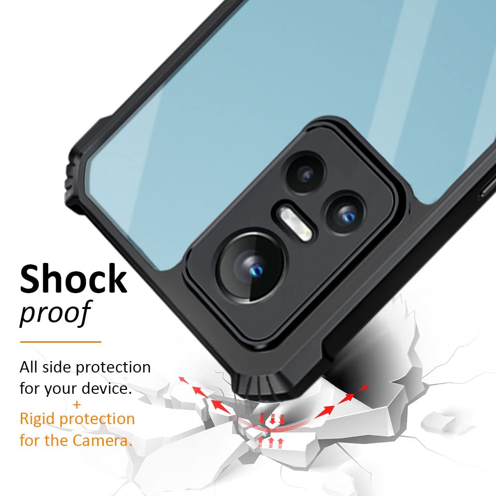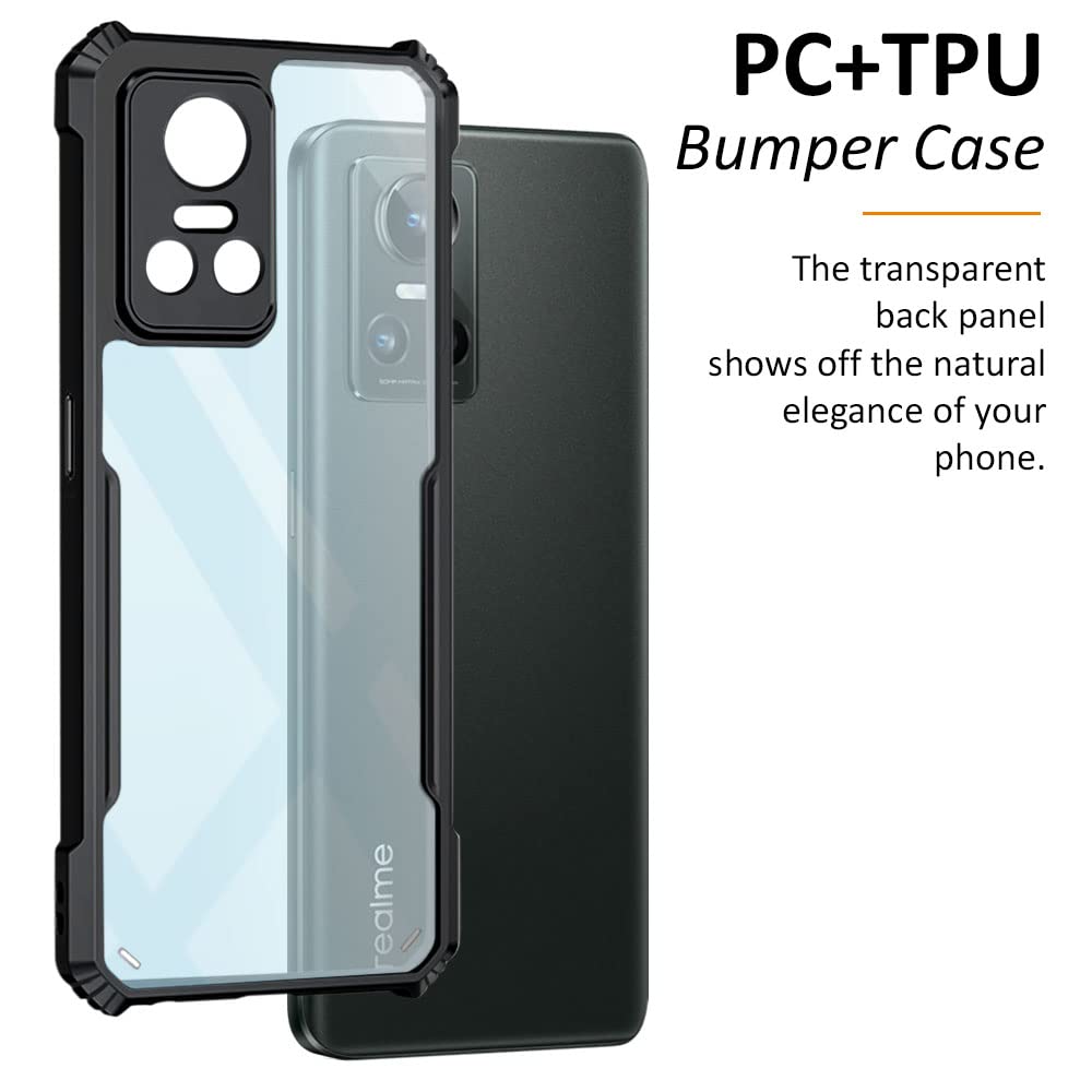 Shockproof Crystal Clear Realme GT Neo 3 5G Back Cover Case | 360 Degree Protection | Transparent Mobile Back Cover Case for Realme GT Neo 3 5G | Hybrid PC + TPU (Black Bumper)